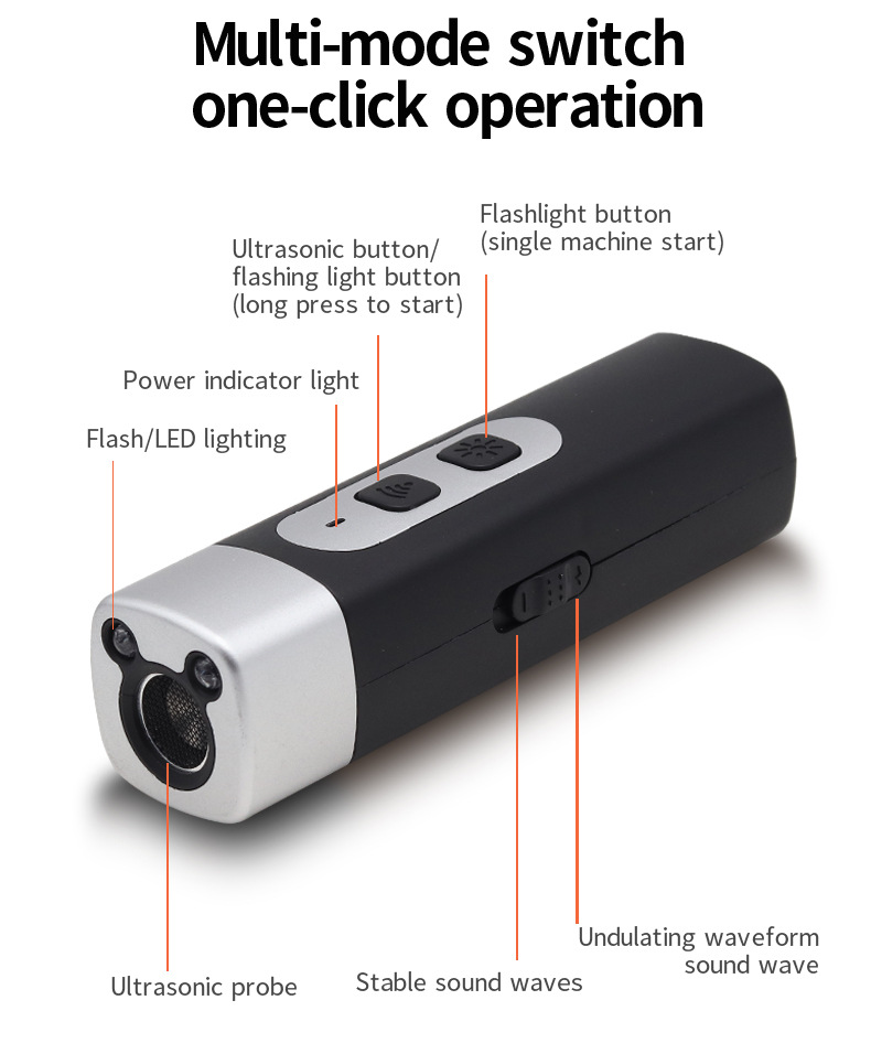 源头工厂直接出货,诚招各地代理商,如有需要请联系客服V,本产品采用超声波声音驱赶,对宠物无实体伤害。用于日常宠物乱叫,或者撕咬的训狗器。外观大方,操作简易和携带方便。三核大功率超声波 高频率超声波高频的声波 刺激恶犬听觉使犬感到害怕