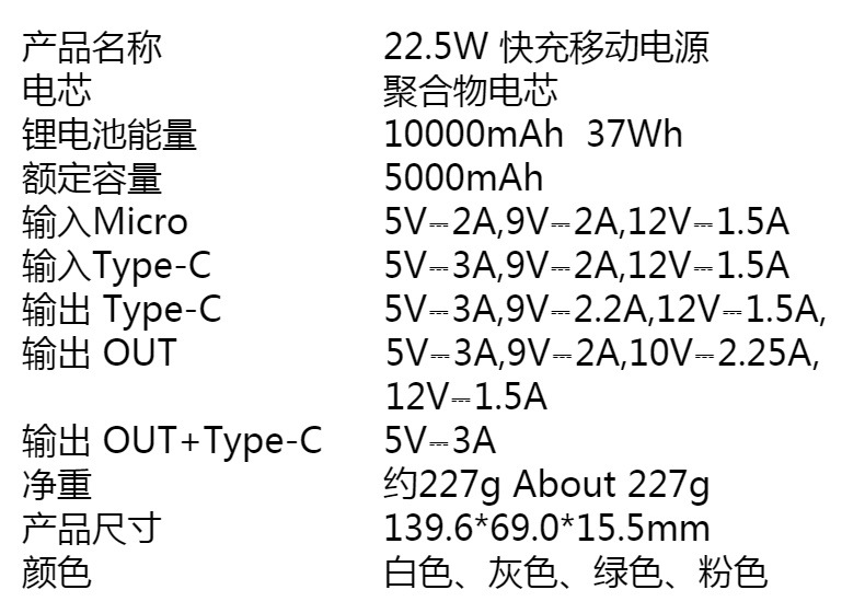 | Potencia de carga | 22.5W |