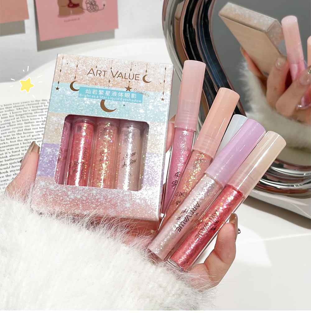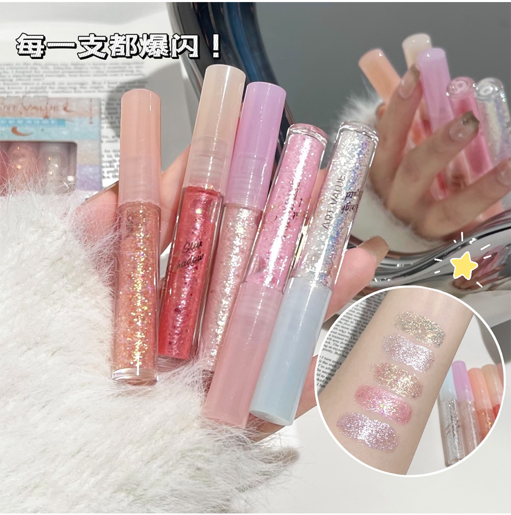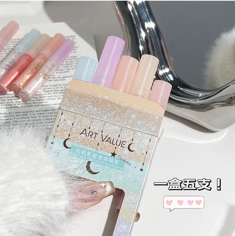 Art Value Sunruo Star Liquid Eye Shadow Kit de cinco colores, superposición de puntos, sombra de ojos rosa natural
