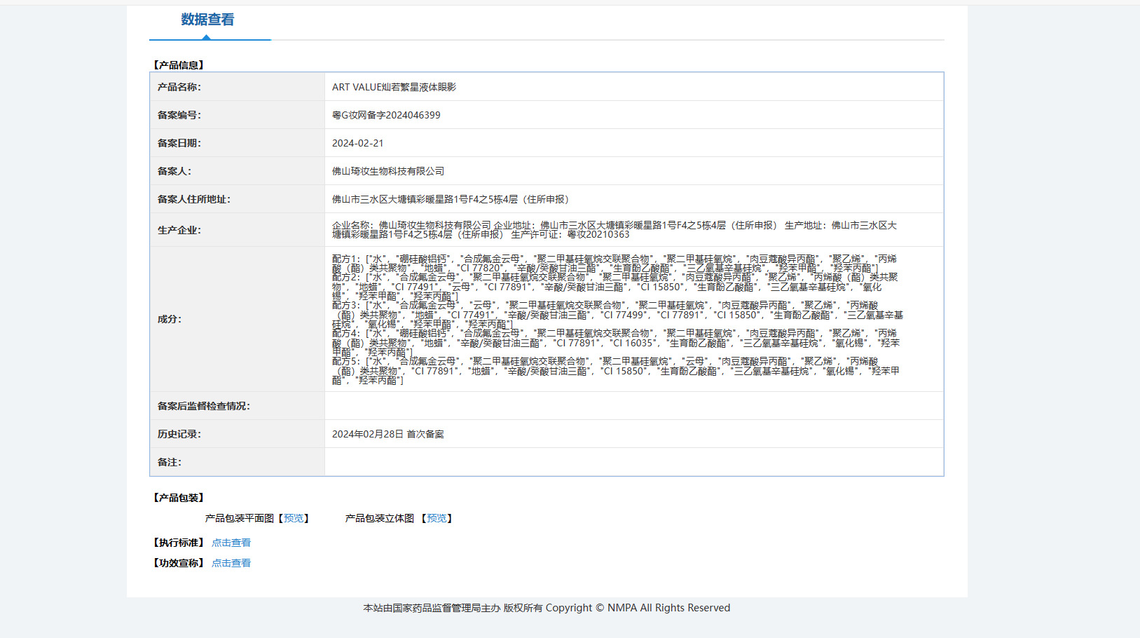 Número de certificado de registro de cosméticos no especiales