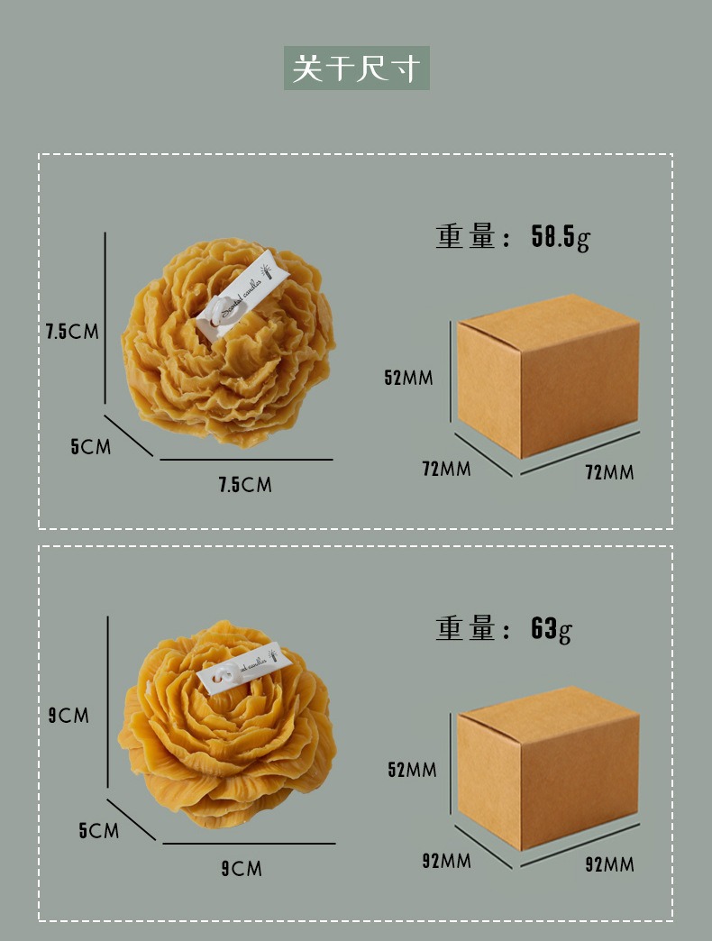 | Tamaño | Peonía Blanca (Sunset Jade),Peonía rosa (oolong melocotón blanco),Peonía púrpura (lavanda),Peonía de color amarillo brillante (cítricos),Peonía negra (BlackBerry),Peonía amarilla oscura (cítricos),Peonía púrpura oscuro (lavanda) |