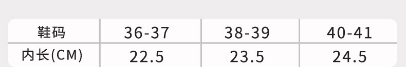 | Talla | 35-36 yardas de longitud interior 22,5 cm para pies de 34-35 yardas,37-38 yardas de longitud interior 23.5cm para pies de 36-37 yardas,39-40 yardas de longitud interior 24.5cm para pies de 38-39 yardas |