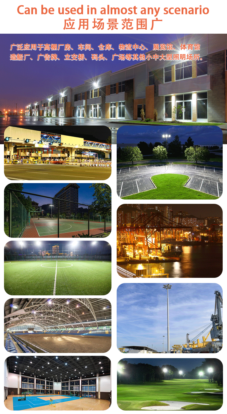 | Alcance del uso | Túnel / metro / poste alto de la plaza / poste alto de la carretera / Aeropuerto / proyecto de ingeniería / taller grande / planta / almacén / Centro Logístico / gimnasio |
