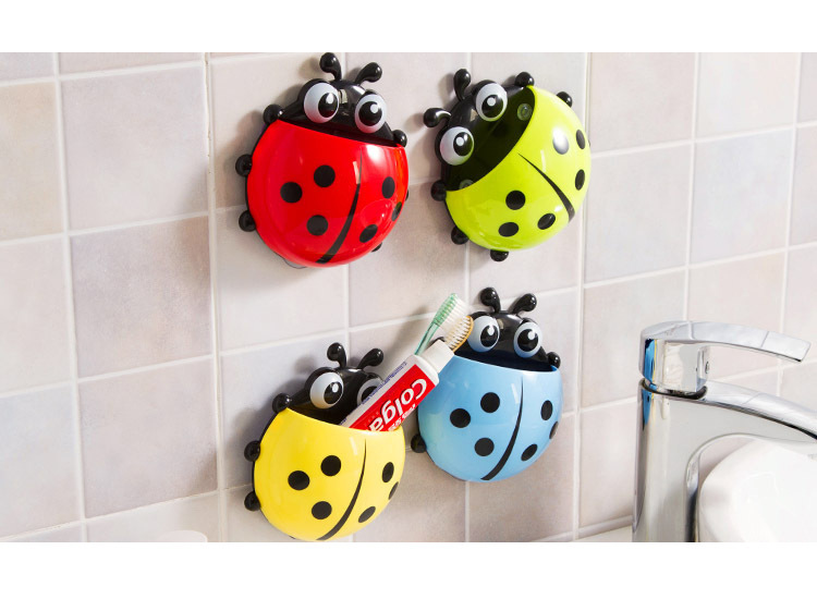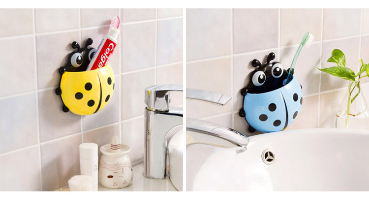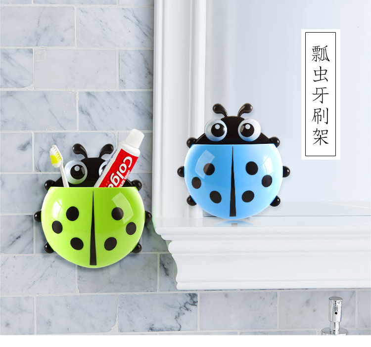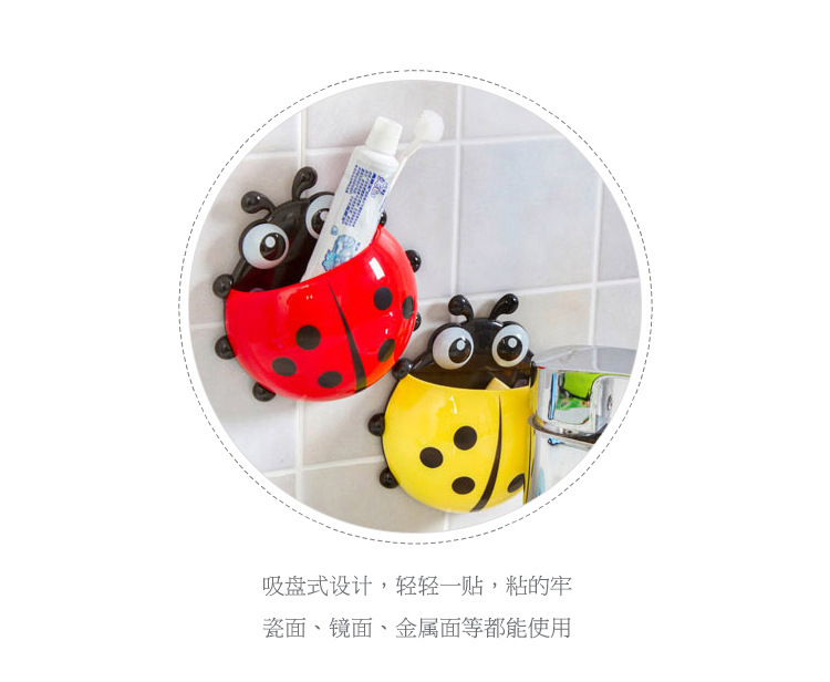 Estante de pasta de dientes mariquita multifuncional dibujos animados lindos poderosos ventosa estante de almacenamiento sin perforación cepillo de dientes pasta de dientes de toda la red