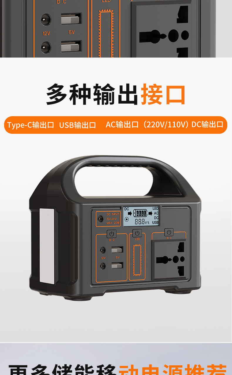 Americano, americano, americano, japonés, 600W 600W fuente de alimentación al aire libre 500W transfronterizo suministro de comercio electrónico fábrica de almacenamiento de energía móvil