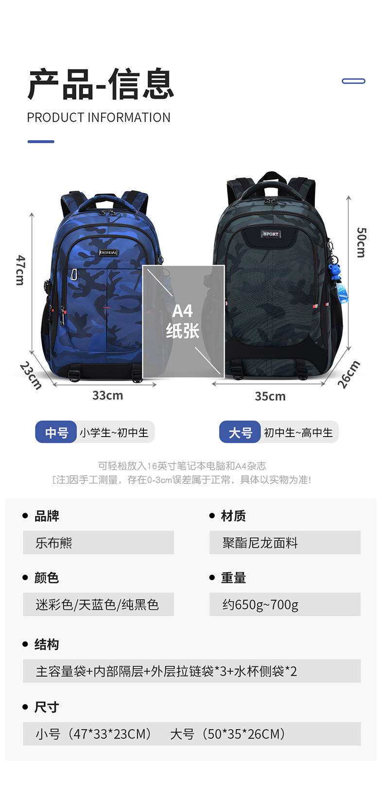 | Material | Tela de Oxford |