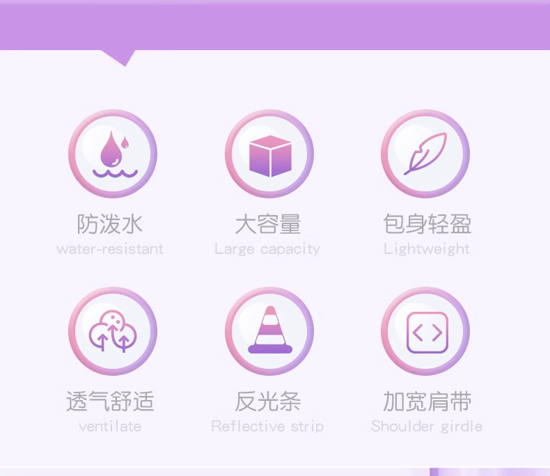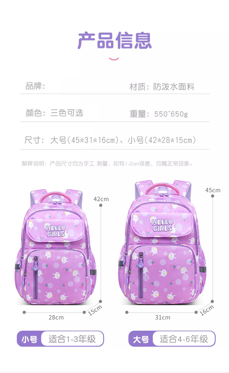 | Color | Tamaño grande morado, tamaño grande azul, tamaño grande rosa, tamaño pequeño morado, tamaño pequeño azul, tamaño pequeño rosa |