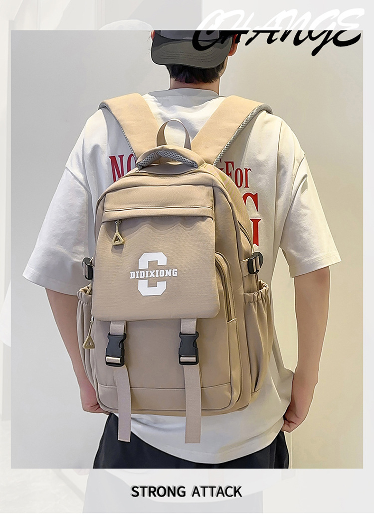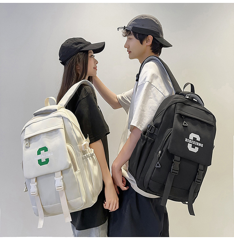 Mochila escolar para estudiantes universitarios masculinos, mochila de gran capacidad para estudiantes de secundaria y secundaria, mochila de pareja con solapa de marca de moda