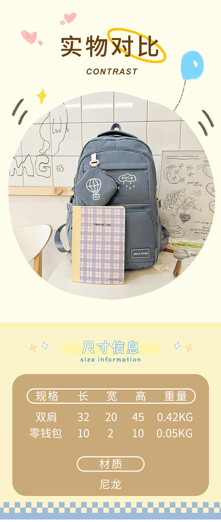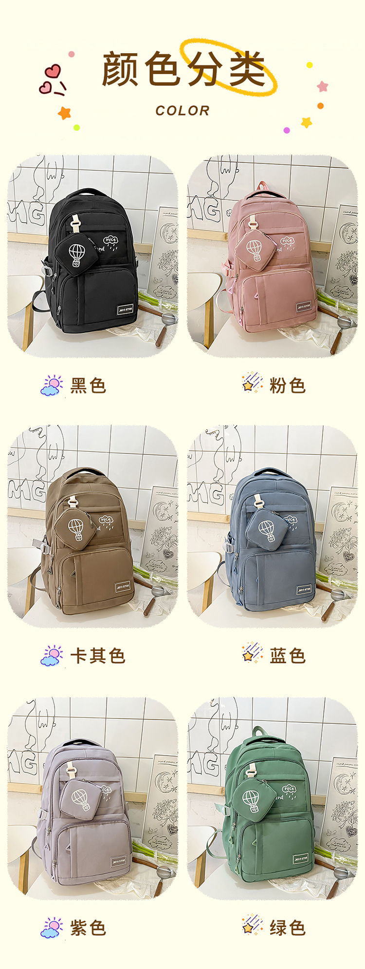 Nuevo estilo de moda color de contraste mochila escolar para estudiantes de secundaria y preparatoria, mochila de ocio de gran capacidad de dibujos animados de oso japonés, mochila de viaje