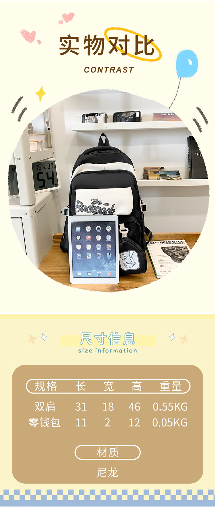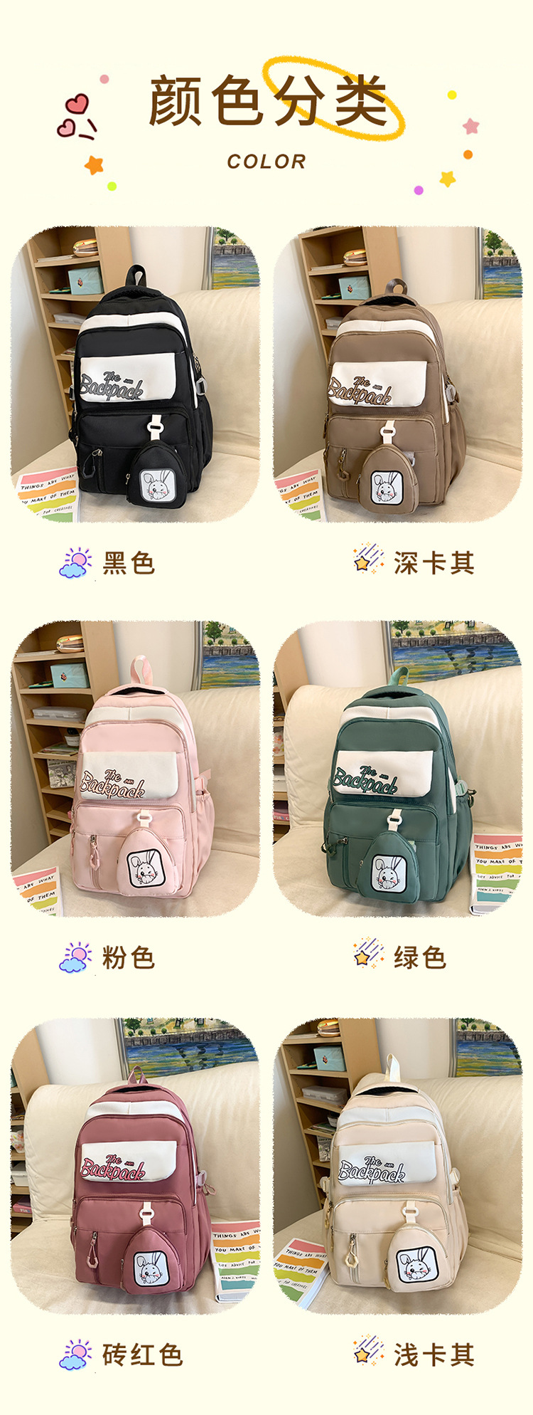 Mochila Venta directa de fábrica Mochila doble de conejo de gran capacidad Mochila escolar para estudiantes de secundaria y preparatoria Mochila linda para niñas