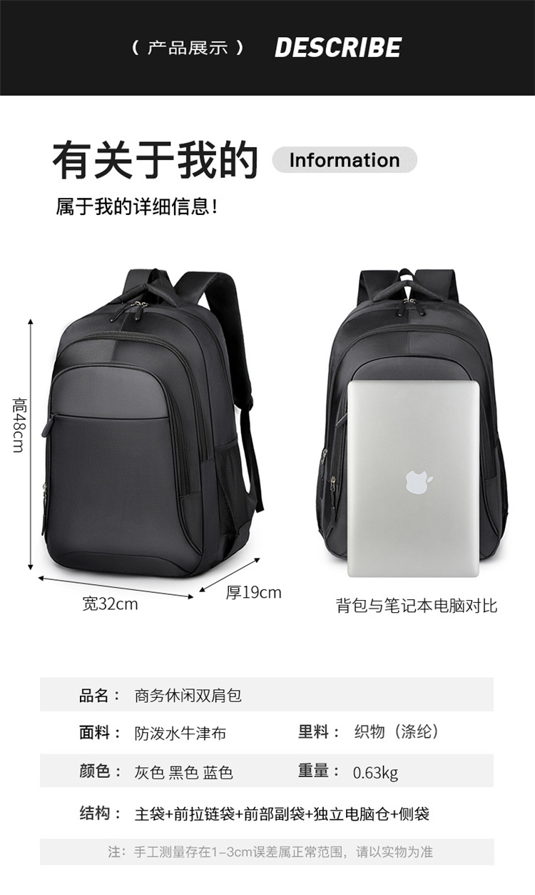 Bolsa de computadora de negocios simple logotipo de impresión transfronteriza bolsas escolares de estudiantes de escuela secundaria y secundaria de alta capacidad de transporte Oxford mochila