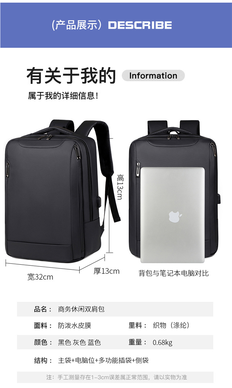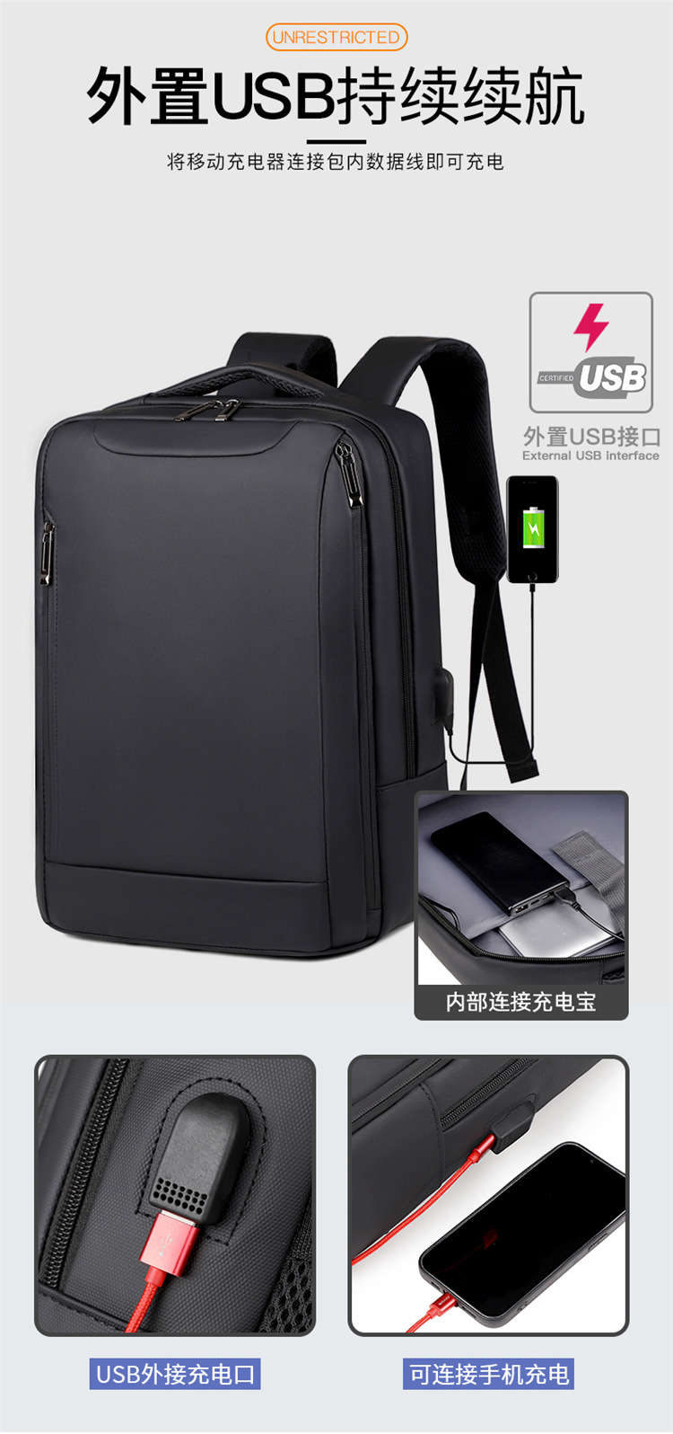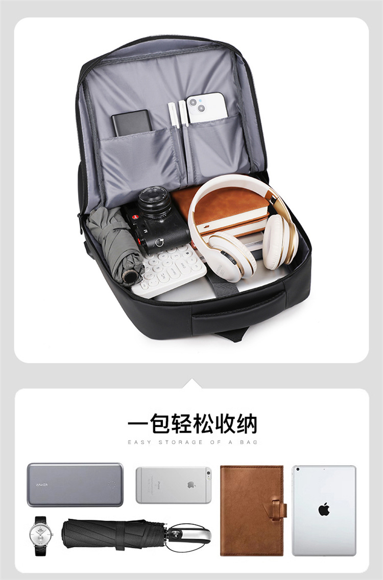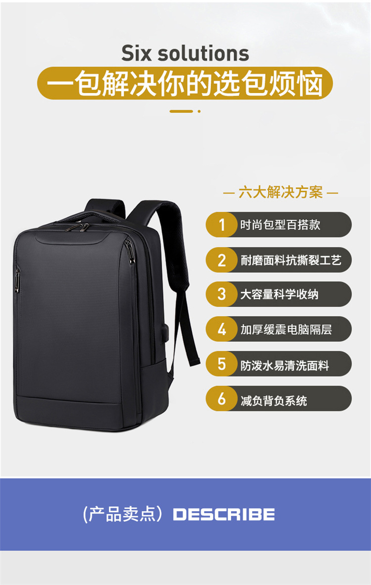 Nuevas mochilas de negocios transfronterizas USB mochila de computadora impermeable para hombres mochila de estudiantes de tela de Oxford de gran capacidad
