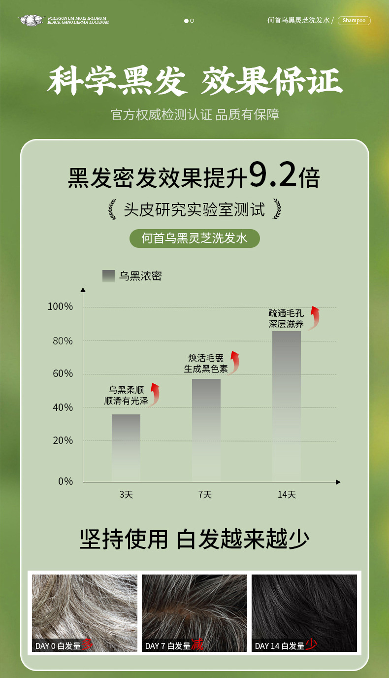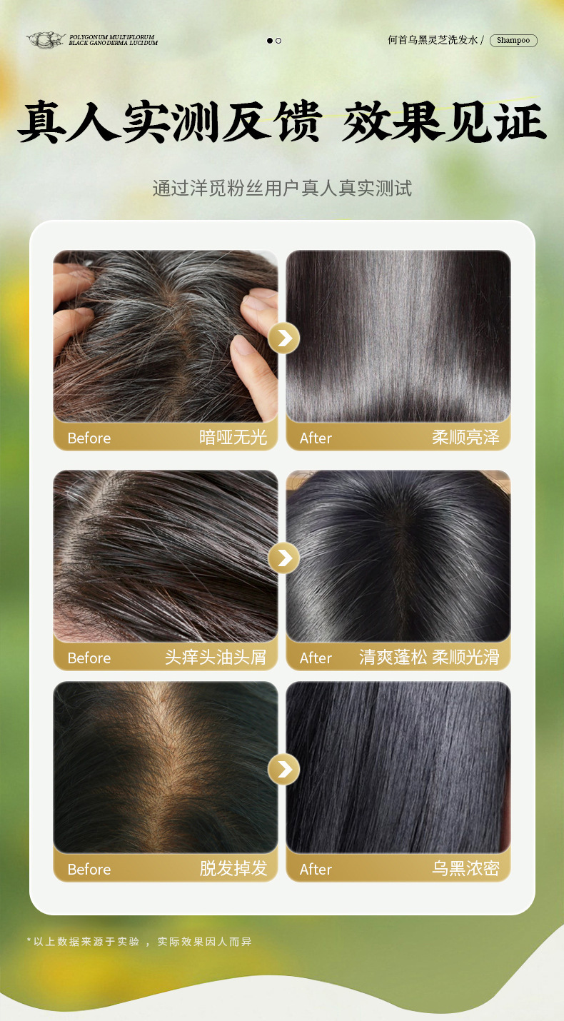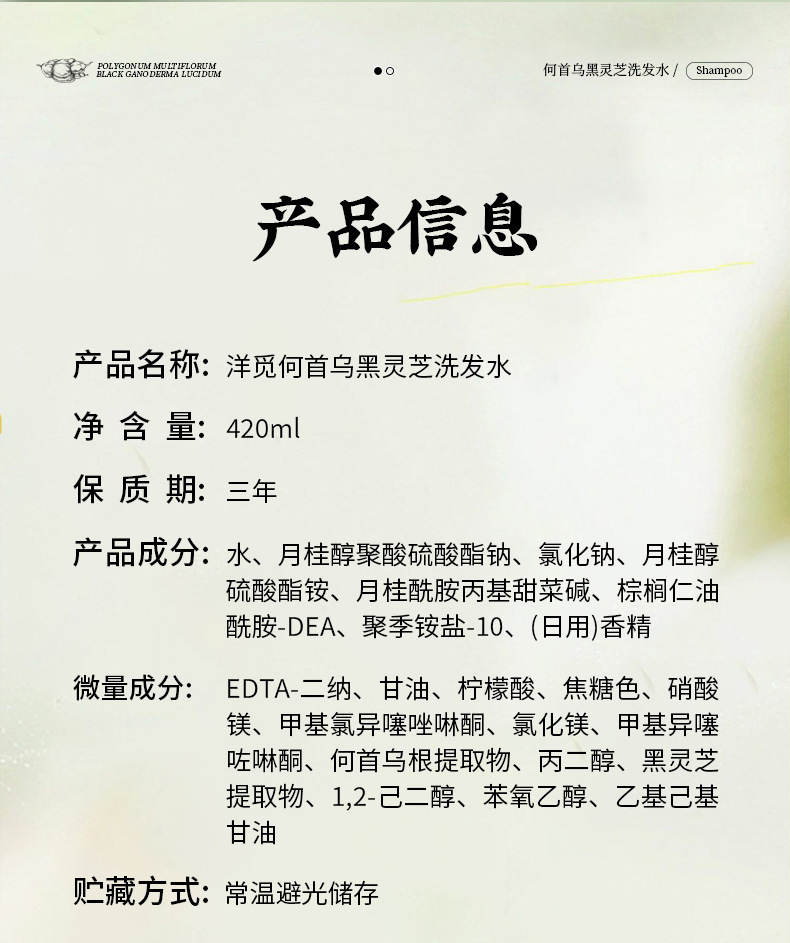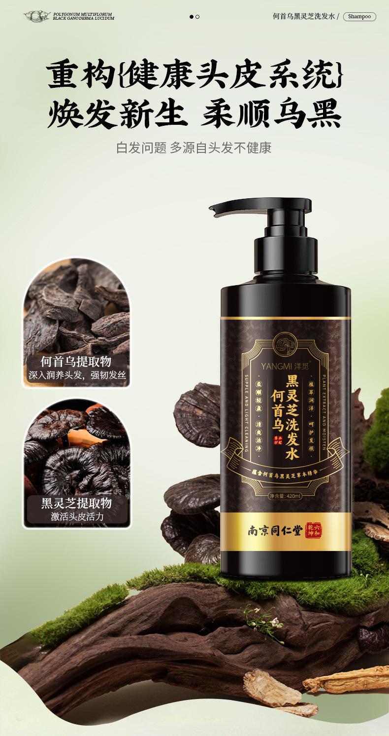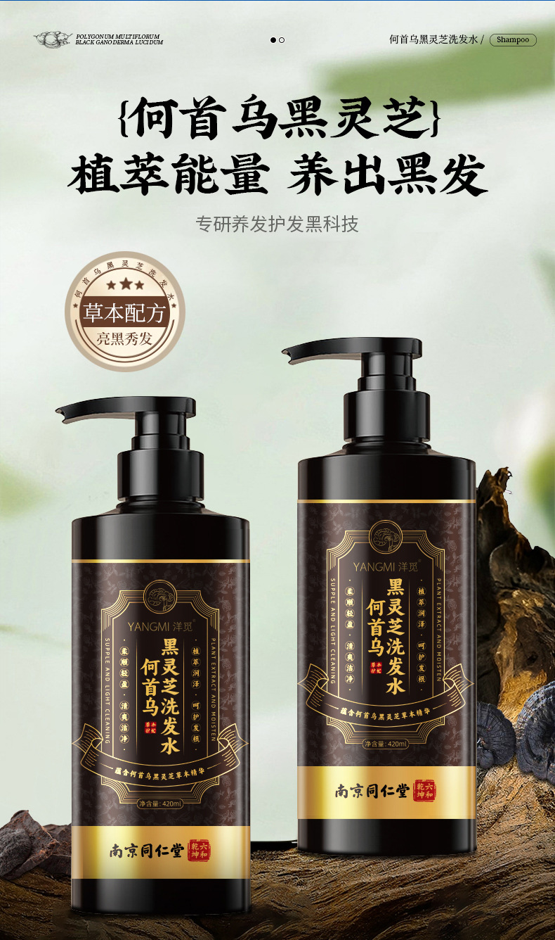 | Nombre del producto | Champú Nanjing Tongrentang Yangmi Black Ganoderma Polygonum multiflorum |