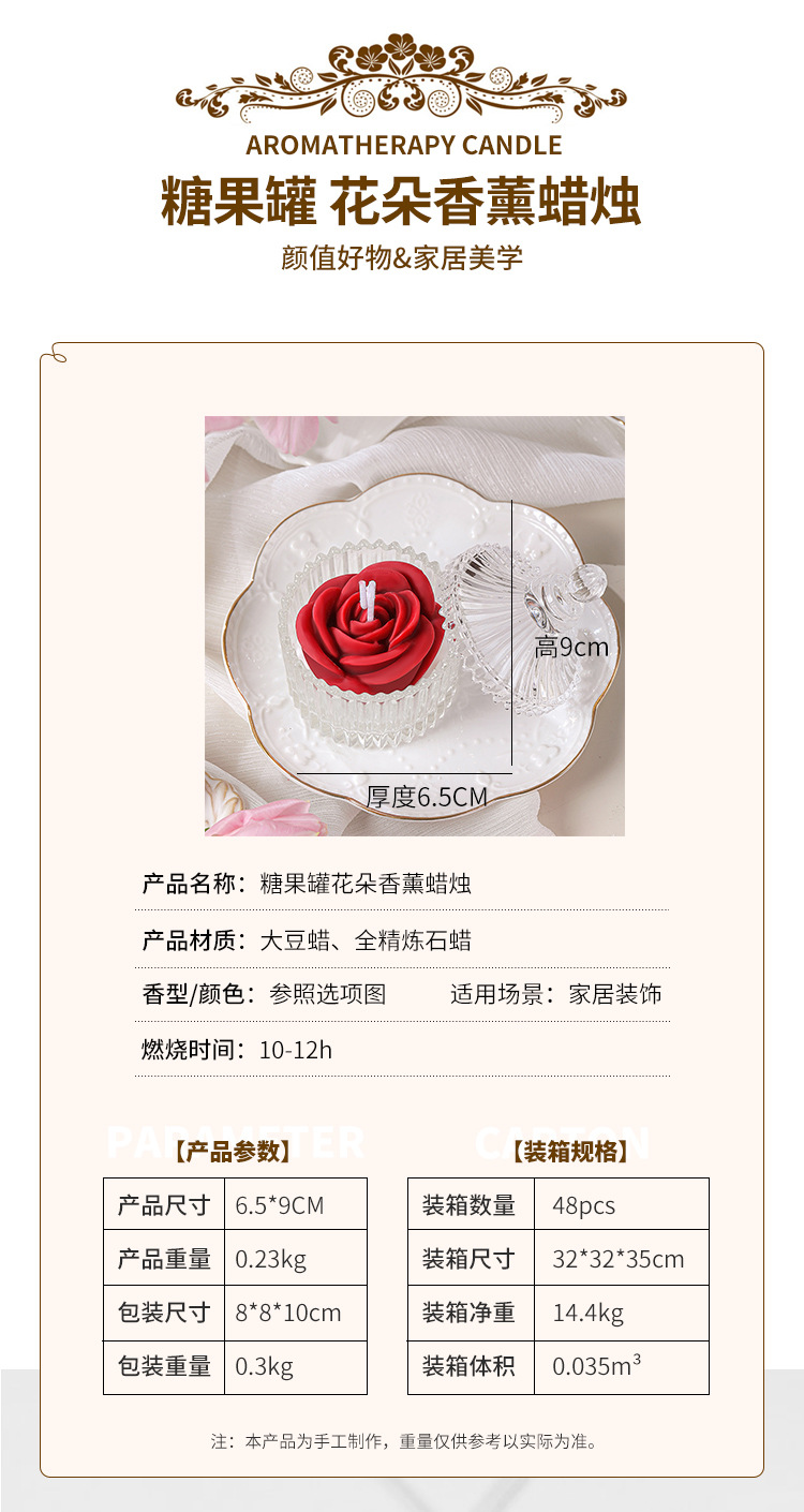 | Color | Candy Jar vela perfumada Austin Rose (Perfume: Pera inglesa y freesia),Vela de aromaterapia Candy Jar Red Rose (Fragancia: El sello de la embriaguez),Candy Jar aromaterapia vela manzanilla (Perfume: Rosa blanca,Candy Jar aromaterapia vela Hortensia púrpura (Fragancia: lavanda francesa,Candy Jar aromaterapia Vela huevo flor (Perfume: Flor naranja brillante) |