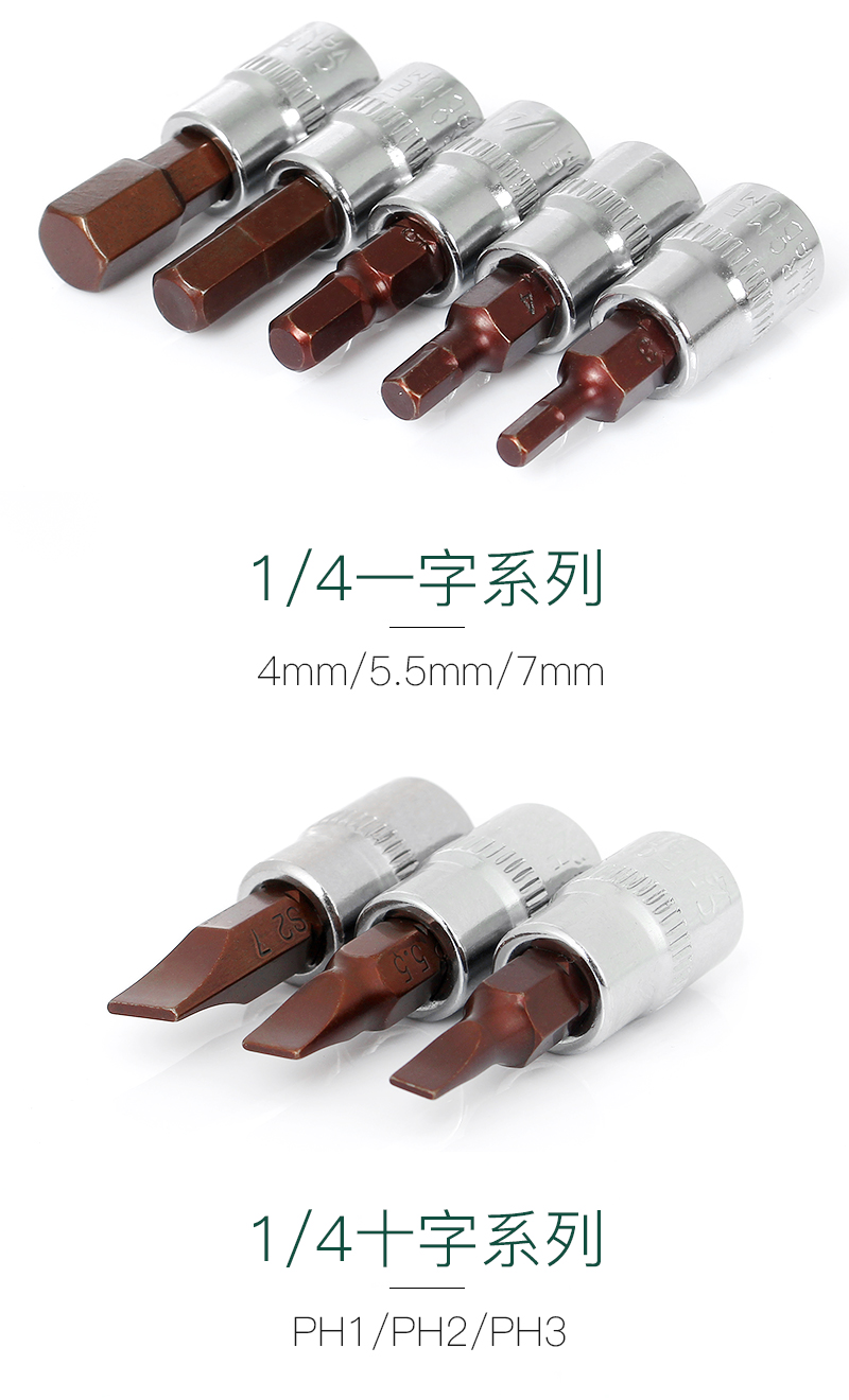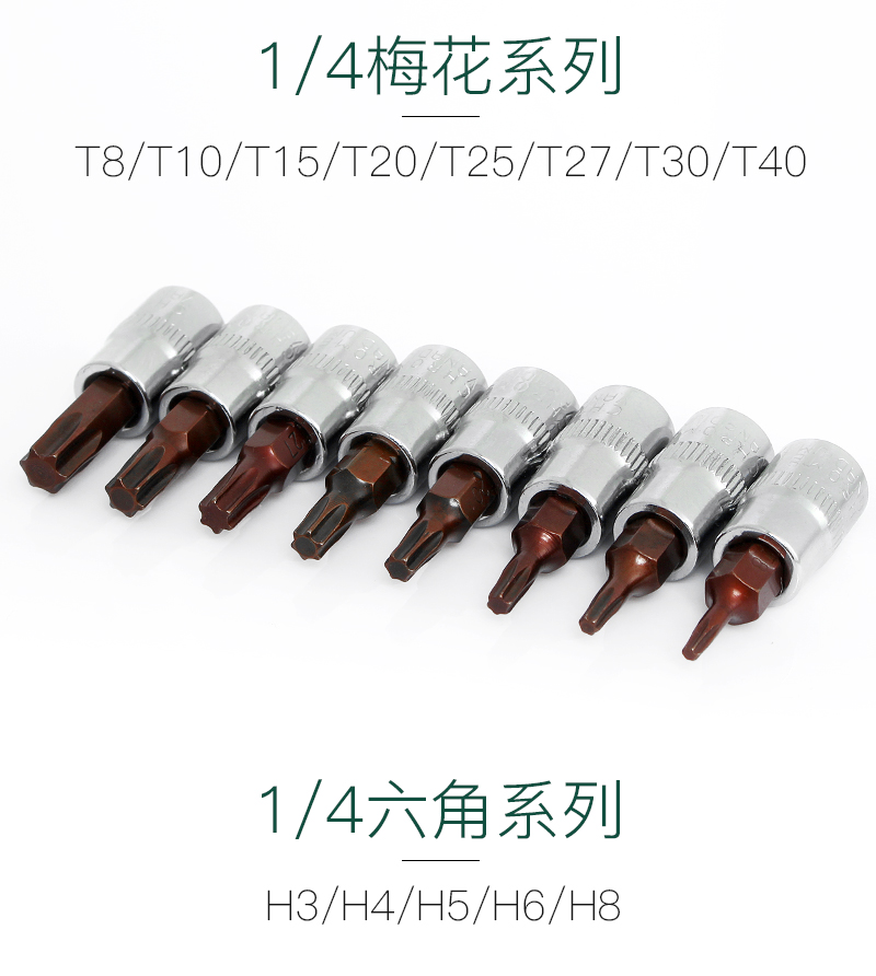 | Especificaciones y modelos | 1 / 4 Xiaofei 6,3 mm t8, 1 / 4 Xiaofei 6,3 mm t10, 1 / 4 Xiaofei 6,3 mm t15, 1 / 4 Xiaofei 6,3 mm t20, 1 / 4 Xiaofei 6,3 mm t25, 1 / 4 Xiaofei 6,3 mm t27, 1 / 4 Xiaofei 6,3 mm t30, 1 / 4 Xiaofei 6,3 mm t40, 1 / 4 Xiaofei 6,3 mm h3, 1 / 4 Xiaofei 6,1 / 4 Xiaofei M h5, 1 / 4 Xiaofei 6,3 mm h6, 1 / 4 Xiaofei 6,3 mm h7, 1 / 4 Xiaofei 6,3 mm h8, t8 - t40 8 juegos, H3 - H8 5 juegos, rotación de barras de bola, 1 / 4 Xiaofei 6,3 mm de barras cortas, 1 / 4 Xiaofei 6 pulgadas de barras largas, 1 / 4 Xiaofei 6 pulgadas de barras flexibles metálicas, 1 / 4 Xiaofei 6,3 mm de cabeza universal, 1 / 4 Xiaofei 6,3 m de barras cuadradas, Xiaofei llave de trinquete de 72 dientes con mango |
