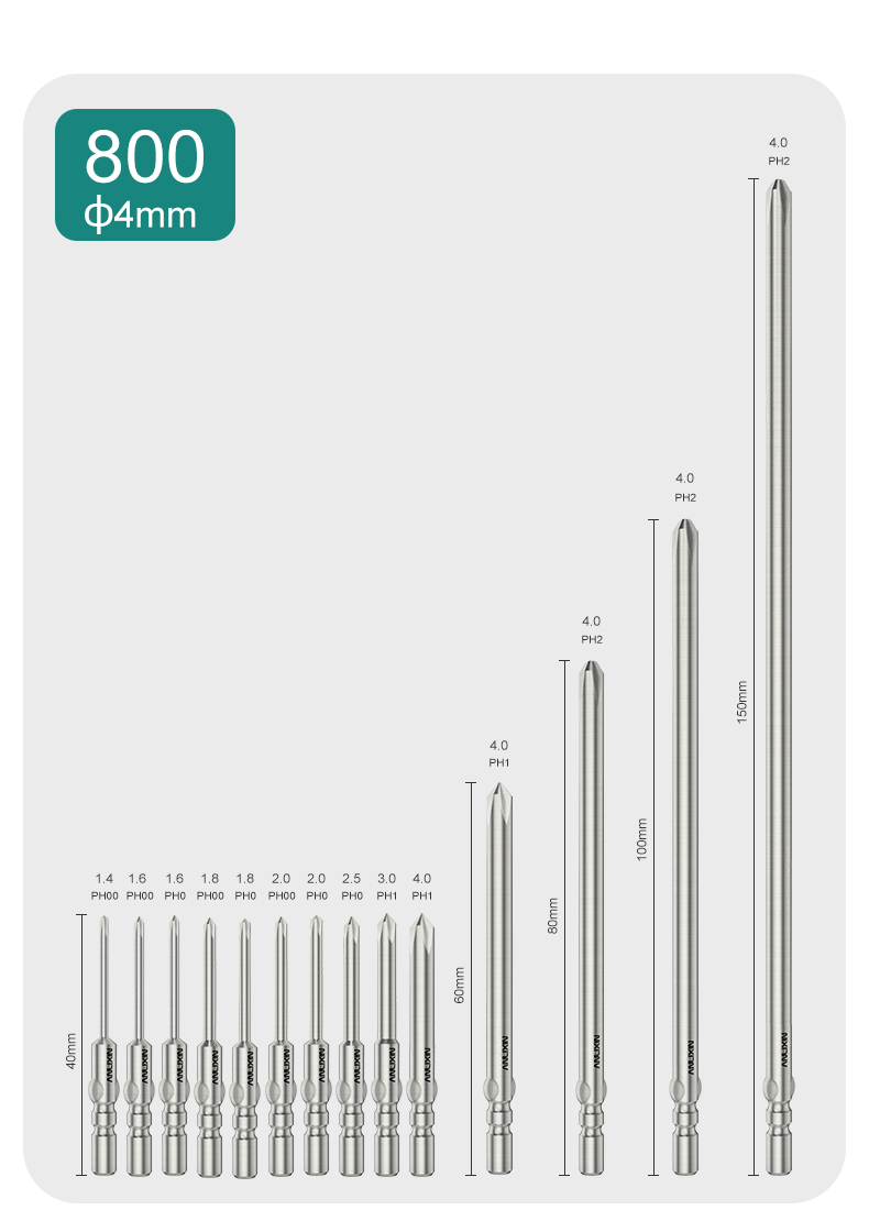 | Modelo | φ4*40*φ1.4*20*PH00(800系列10支装),φ4*40*φ1.6*20*PH00(800系列10支装),φ4*40*φ1.8*20*PH00(800系列10支装),φ4*40*φ2.0*20*PH00(800系列10支装),φ4*40*φ1.6*20*PH0(800系列10支装),φ4*40*φ1.8*20*PH0(800系列10支装),φ4*40*φ2.0*20*PH0(800系列10支装),φ4*40*φ2.5*20*PH0(800系列10支装),φ4*40*φ3.0*20*PH1(800系列10支装),φ4*40*PH1(800系列10支装),φ4*60*PH1(800系列10支装),φ4*80*PH2(800系列10支装),φ4*100*PH2(800系列10支装),φ4*150*PH2(800系列10支装),φ5*60*φ1.6*25*PH00(801系列10支装),φ5*60*φ2.0*25*PH0(801系列10支装),φ5*60*φ2.5*25*PH0(801系列10支装),φ5*60*φ3.0*25*PH1(801系列10支装),φ5*60*φ4.0*25*PH1(801系列10支装),φ5*60*PH1(801系列10支装),φ5*100*PH1(801系列10支装),φ5*150*PH1(801系列10支装),φ5*80*PH2(801系列10支装),φ5*100*PH2(801系列10支装),φ5*200*PH2(801系列10支装),φ6*60*φ2.5*25*PH0(802系列10支装),φ6*60*φ3.0*30*PH1(802系列10支装),φ6*60*φ4.0*30*PH1(802系列10支装),φ6*60*PH1(802系列10支装),φ6*60*φ3.0*25*PH2(802系列10支装),φ6*60*φ4.0*30*PH2(802系列10支装),φ6*100*5.0*50*PH2(802系列10支装),φ6*60*PH2(802系列10支装),φ6*80*PH2(802系列10支装),φ6*100*PH2(802系列10支装) |