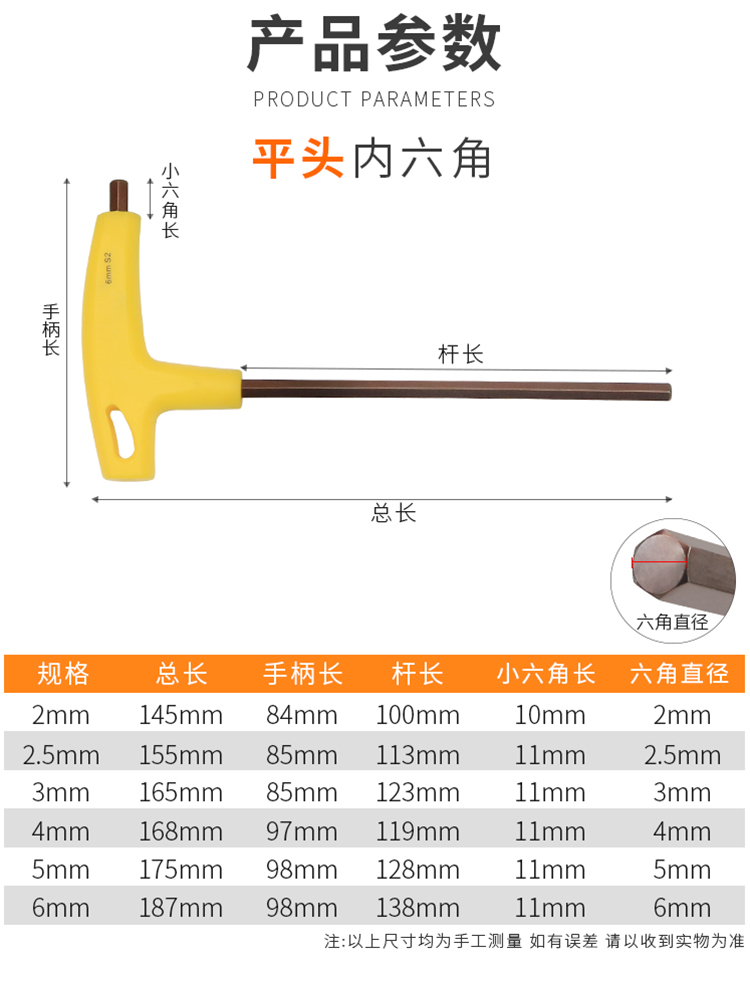 | Especificaciones y modelos | Llave hexagonal interior de mango t de muleta S2 H2 (mango amarillo), llave hexagonal interior de mango t de muleta S2 h2.5 (mango amarillo), llave hexagonal interior de mango t de muleta S2 H3 (mango amarillo), llave hexagonal interior de mango t de muleta S2 H4 (mango amarillo), llave hexagonal interior de mango t de muleta S2 H6 (mango amarillo), llave hexagonal interior de Mango t de muleta S2 h3x400mm, llave hexagonal interior de mango t de muleta S2 h4x400mm, llave hexagonal interior de mango t de longitud S2 x400mm llave hexagonal en forma de T h6x400mm, llave hexagonal en forma de t S2 h8x400mm, llave hexagonal en forma de t S2 h10x400mm, llave hexagonal en forma de T h4x400 [modelo de cabeza de bola, llave hexagonal en forma de T h5x400 [modelo de cabeza de bola, llave hexagonal en forma de T h6x400 [modelo de cabeza de bola, llave hexagonal en forma de T h6x400 [modelo de cabeza de bola |