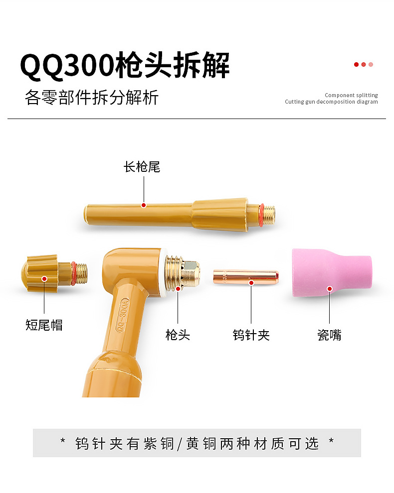 | Conjunto | 9.5x41mm boca de porcelana (10), 12x41mm boca de porcelana (10), clip de aguja de tungsteno 2.0 (10), clip de aguja de tungsteno 2.4 (10), clip de aguja de tungsteno 3.0 (10), clip de aguja de tungsteno 3.2 (10), clip de aguja de tungsteno de cobre rojo 2.4 (10), cola larga (5), cola corta (5), 300 cabeza de pistola refrigerada por aire (1), cabeza de pistola qs300 refrigerada por agua (1), pieza de desviación (5) |