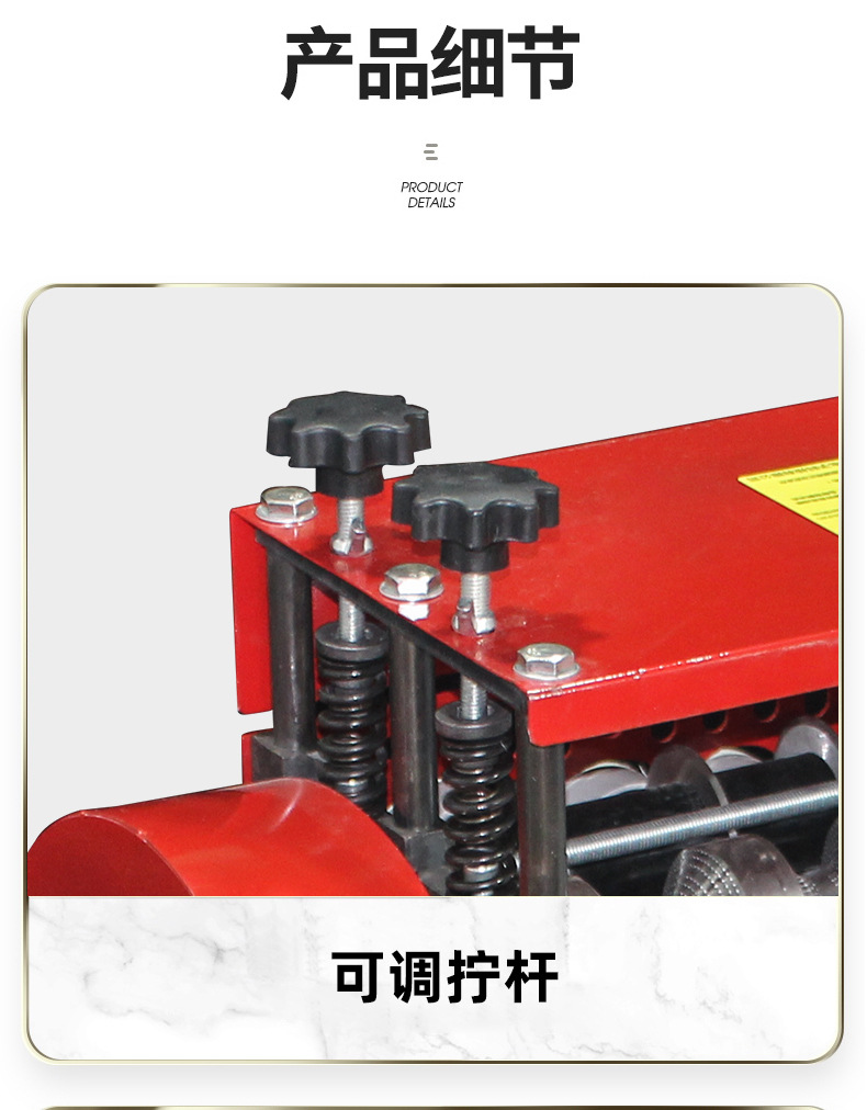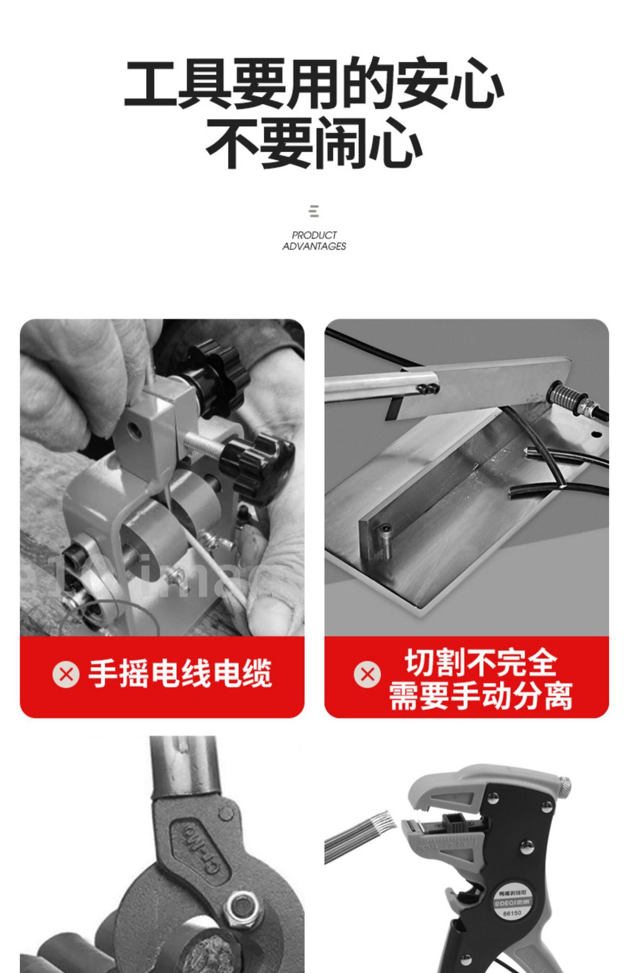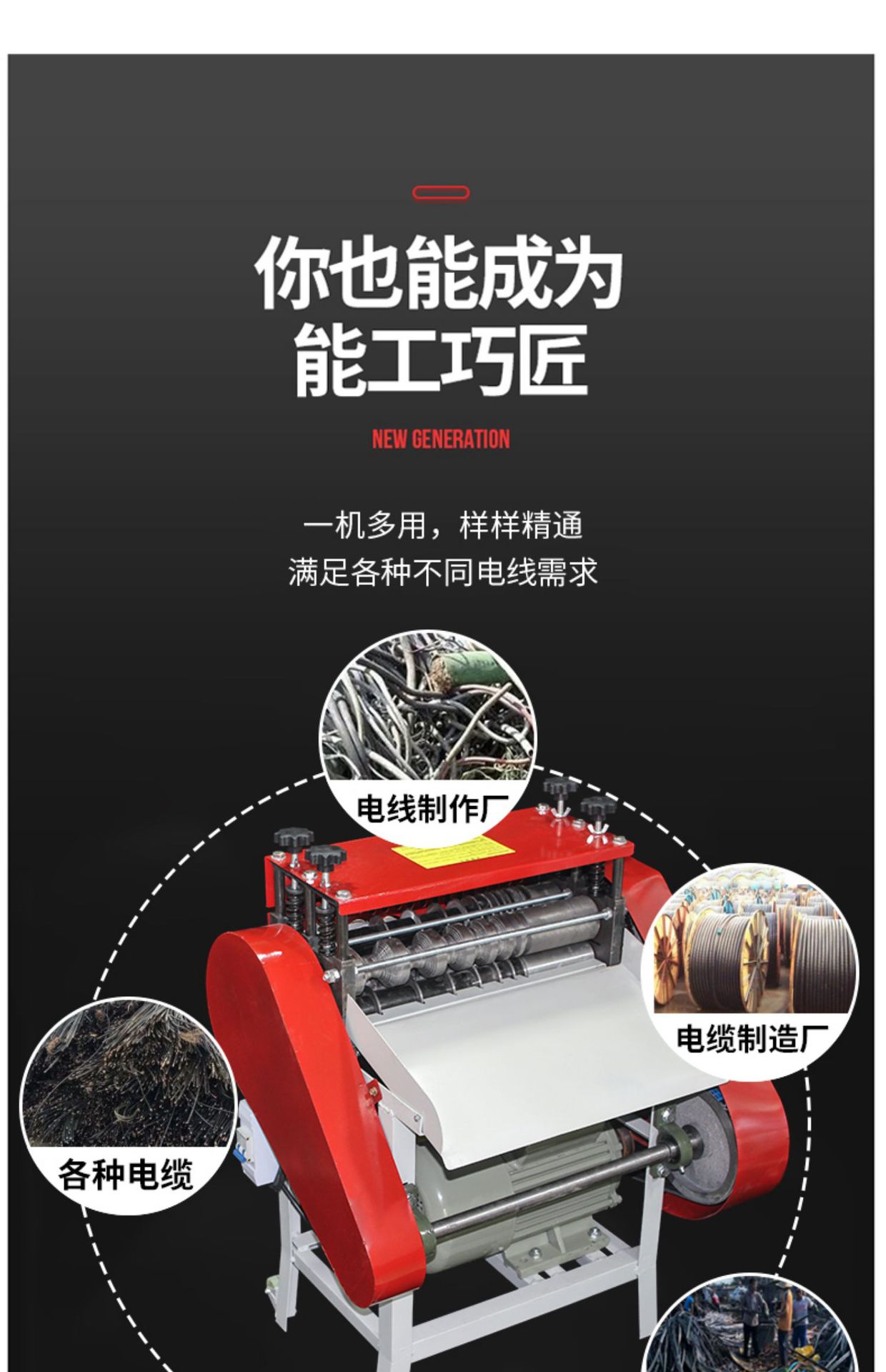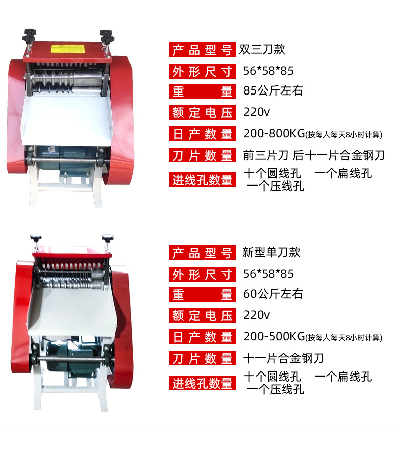 | Especificaciones y modelos | A1实惠款单刀不带电机1-40mm 整机质保三年,A1实惠款单刀带1.5千瓦电机 整机质保三年,A1实惠款单刀带2.2千瓦电机 整机质保三年,A2新款单刀1-45mm不带电机 整机质保三年,A2新款单刀带1.5千瓦电机 整机质保三年,A2新款单刀带2.2千瓦电机 整机质保三年,A2新款单刀带3.0千瓦电机 整机质保三年,C1经济款双三刀1-45mm不带电机 整机质保三年,C1经济款双三刀带1.5千瓦电机 整机质保三年,C1经济款双三刀带2.2千瓦电机 整机质保三年,C1经济款双三刀带3.0千瓦电机 整机质保三年,C2实惠款双五刀不带电机1-45mm 整机质保三年,C2实惠款双五刀带1.5千瓦电机 整机质保三年,C2实惠款双五刀带2.2千瓦电机 整机质保三年,C2实惠款双五刀带3千瓦电机 整机质保三年,C3新款双六刀不带电机1-45mm 整机质保三年,C3新款双六刀带1.5千瓦电机 整机质保三年,C3新款双六刀带2.2千瓦电机 整机质保三年,C3新款双六刀带3千瓦电机 整机质保三年,C4出口款双六刀不带电机1-45mm 整机质保三年,C4出口款双六刀带1.5千瓦电机 整机质保三年,C4出口款双六刀带2.2千瓦电机 整机质保三年,C4出口款双六刀带3千瓦电机 整机质保三年,F1新款多功能双七刀不带电机1-60mm 整机质保三年,F1新款多功能双七刀带3千瓦电机220v 整机质保三年,F1新款多功能双七刀带3千瓦电机380v 整机质保三年,F1新款多功能双七刀带4千瓦电机220v 整机质保三年,F2新款多功能双八刀不带电机1-65mm 整机质保三年,F2新款多功能双八刀带3千瓦电机380v 整机质保三年,F2新款多功能双八刀带3千瓦电机220v 整机质保三年,F2新款多功能双八刀带4千瓦电机220v 整机质保三年,F3新款多功能双九刀不带电机1-70mm,F3新款多功能双九刀带3千瓦电机(220V),F3新款多功能双九刀带3千瓦电机(380V),F3新款多功能双九刀带4千瓦电机(220V),F5工业款剥线机带3千瓦电机(220v) 整机质保三年,F5工业款剥线机带3千瓦电机(380v) 整机质保三年,老款单刀不带电机 不送配件 |