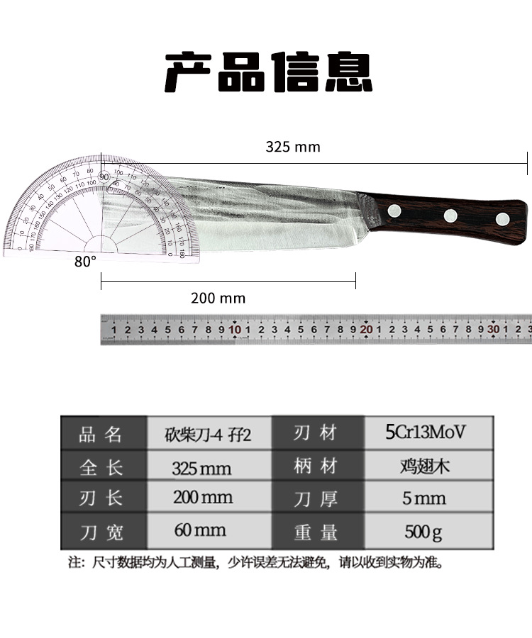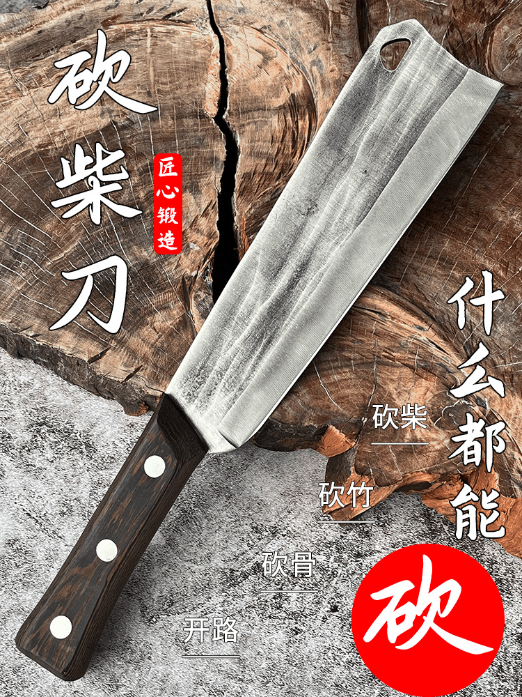 Cuchillo de leña forjado Cuchillo de leña portátil doméstico Cuchillo de leña agrícola Camping Cortar árboles Cortar bambú Despejar barricadas Cuchillo multiusos