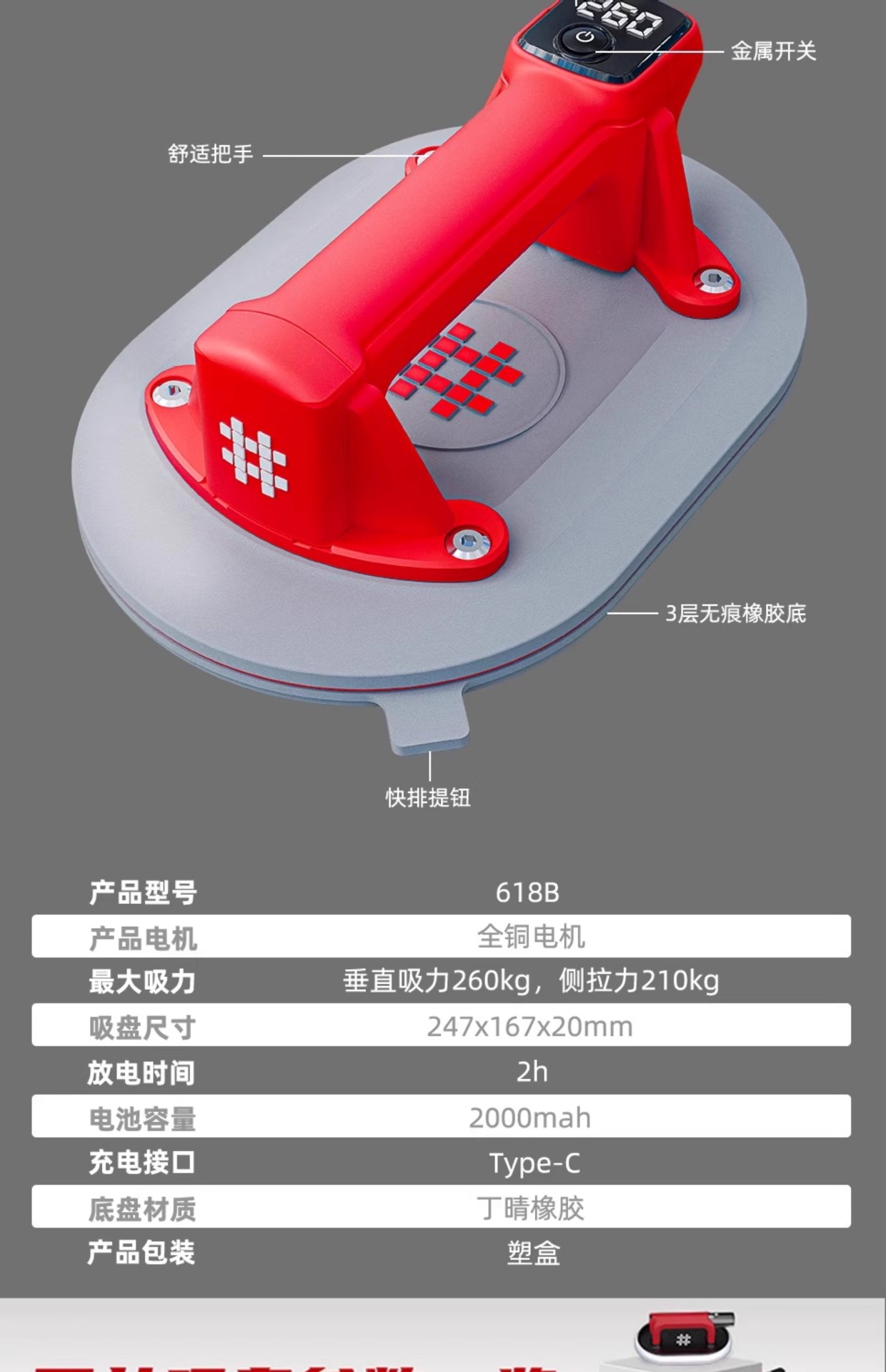 | Modelo de especificación | Ventosa Ishii 618B [succión de 260kg],Ventosa Ishii 6100 [succión de hasta 260kg],Ventosa Shijing P618A [succión de hasta 200kg] en caja de papel,Ventosa Shijing P618A [fuerza de succión de 200kg] caja de plástico,Ventosa Shijing 6109 [Atracción de 220kg],Ventosa Shijing 618B [succión de hasta 260kg] caja de plástico,Ventosa Shijing 6100 [Atracción de 260kg] Caja de plástico,Ventosa Shijing P618A [succión de hasta 200kg] cubierta inferior a prueba de polvo en caja de papel,Ventosa Shijing P618A [fuerza de succión de 200kg] caja de plástico cubierta inferior a prueba de polvo |