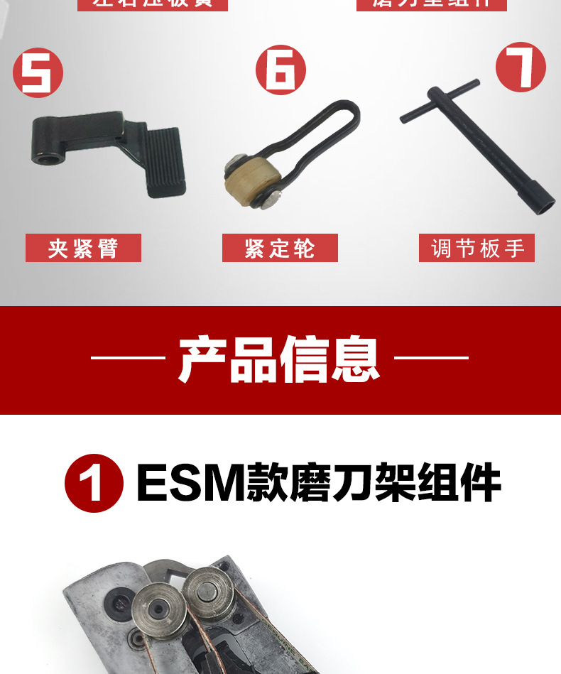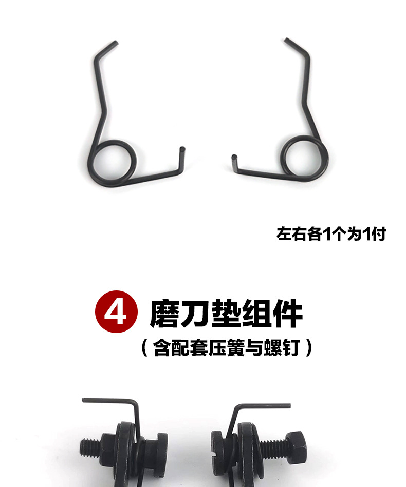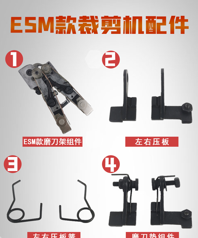 | Especificaciones | Cizallas eléctricas ESM: la forma del motor es plana o el rodillo del chasis no tiene orejas,1 juego de conjunto de portaherramientas tipo ESM No. 1,No. 2 placa de presión izquierda y derecha 1 pago,5 pagos (6 pagos),2 resortes de presión izquierda y derecha n. ° 3,No. 3 ballestas de presión izquierda y derecha disparan 10 pagos (12 pagos),Conjunto de almohadilla de afilado No. 4 1 juego con resorte de presión y tornillo a juego,5 pagos para el conjunto de almohadilla de afilado No. 4 (6 pagos) con resortes y tornillos de presión a juego,5 brazos de sujeción 1,2 ruedas de apriete No. 6,Llave de ajuste de tornillo de afilador No. 7 1 adecuada para la mayoría de las tijeras eléctricas hexagonales 8mm |