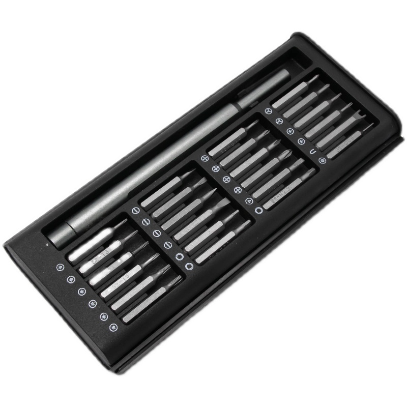 Juego de destornilladores de aleación de aluminio 24 en 1 con puntas S2 para reparación y desmontaje de teléfonos móviles, destornillador Phillips y plano.