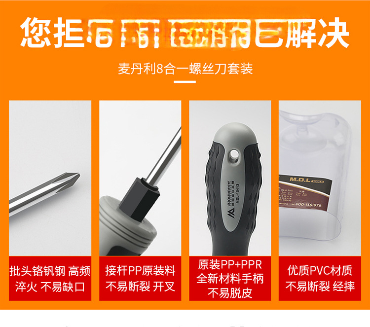 Juego doméstico de 8 en 1, destornillador de 8 en 1 + imán