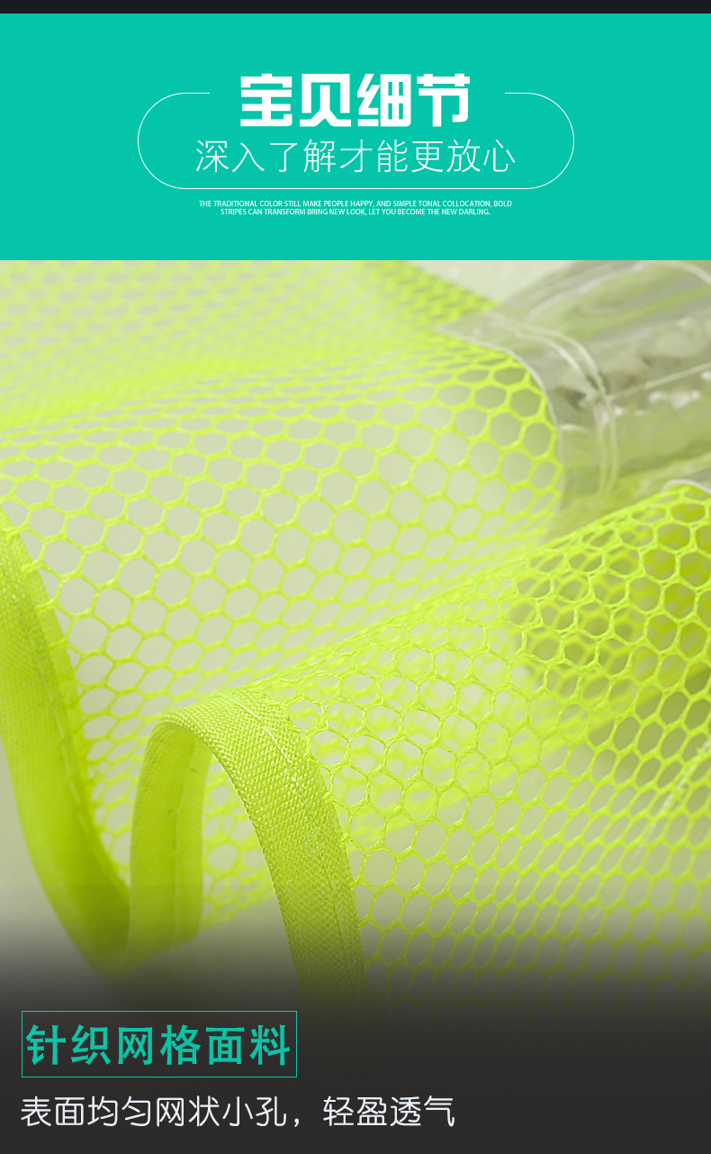 | Especificaciones y modelos | Red Roja pequeña, Red Verde pequeña, cláusula de reflexión de la red sobre el hombro (naranja), cláusula de reflexión de la red sobre el hombro (negro), red negra, red de pesca de tiras amarillas, red amarilla, red naranja, red amarilla, red Roja grande, Red Verde oscura, red amarilla |