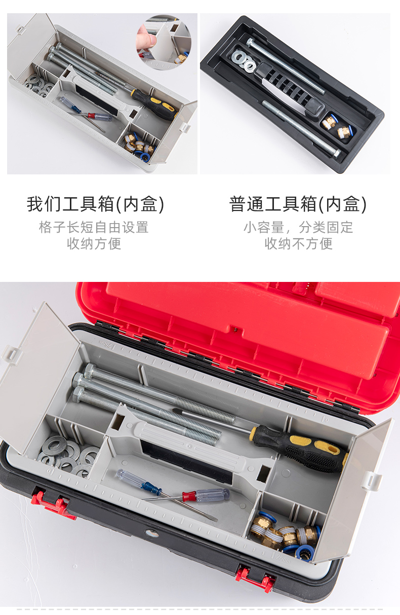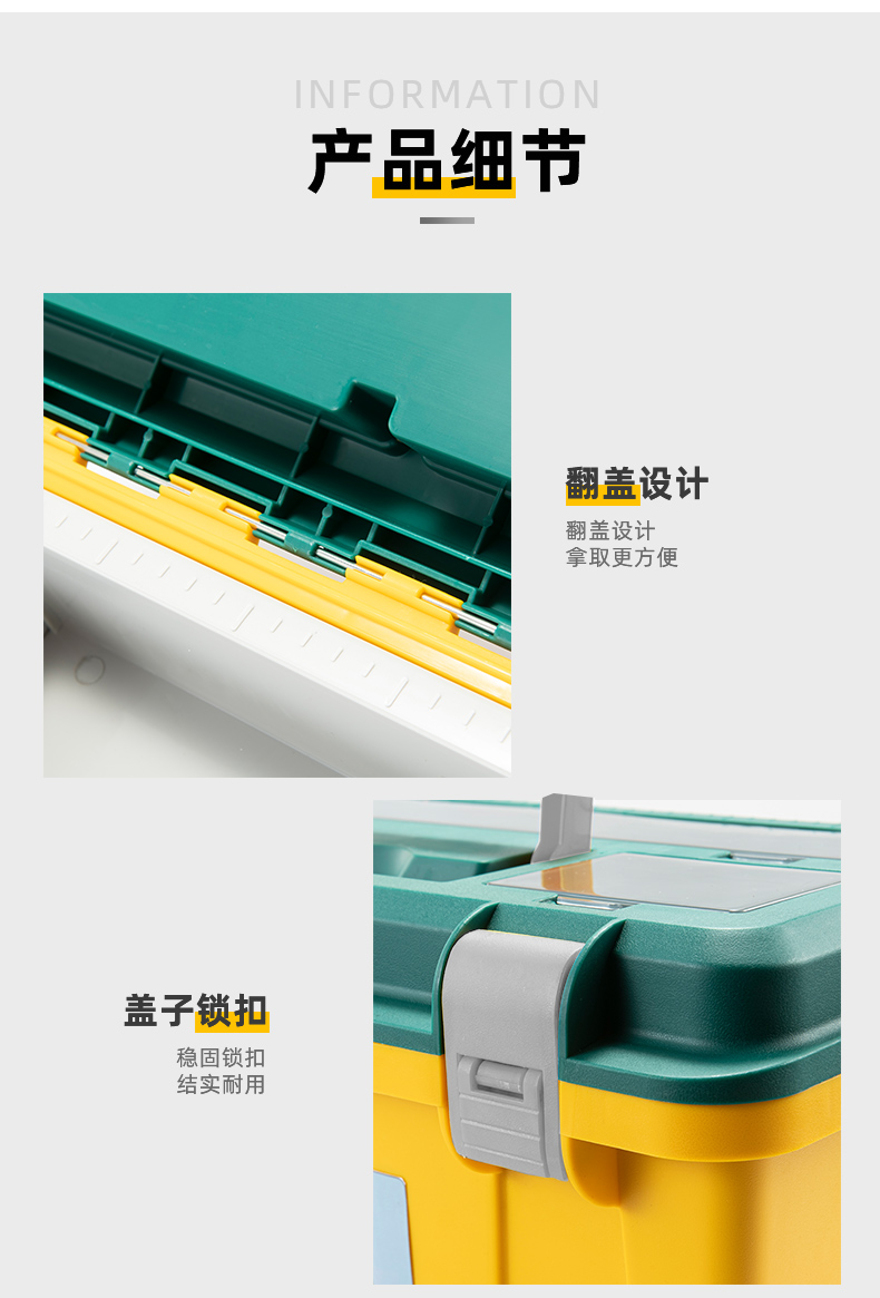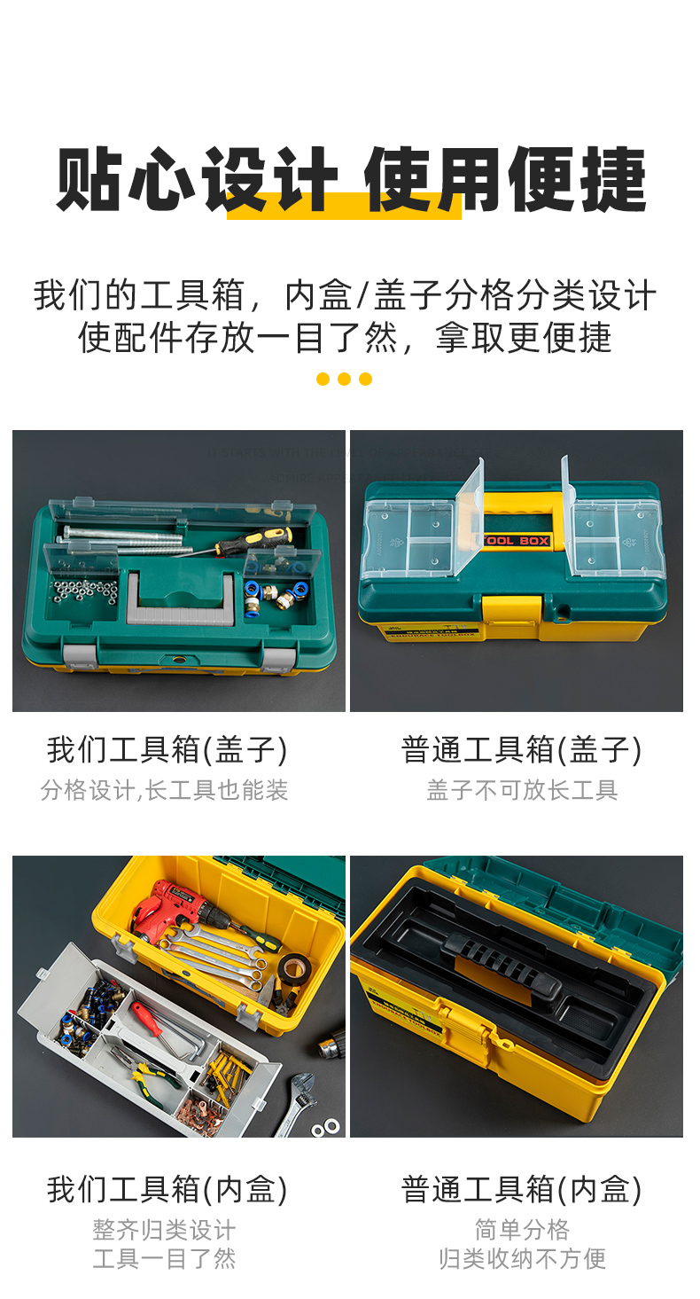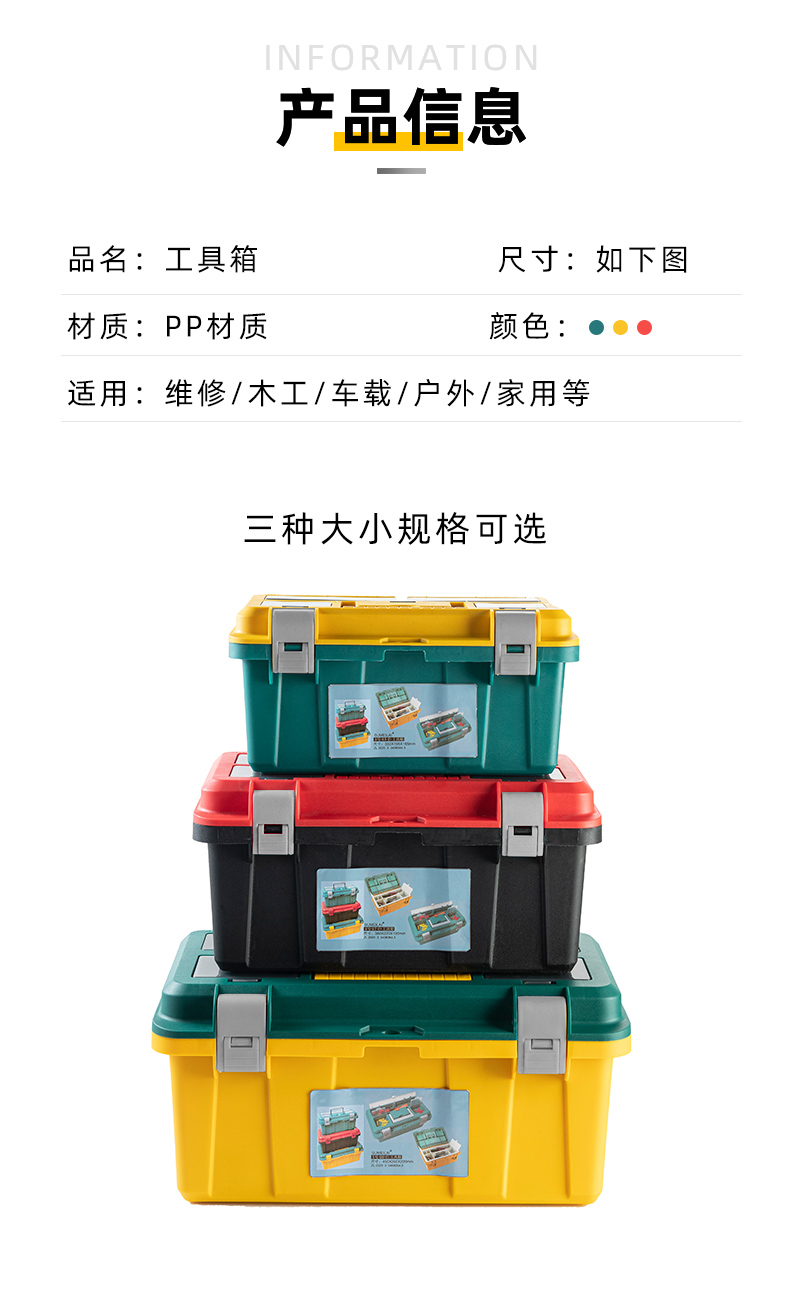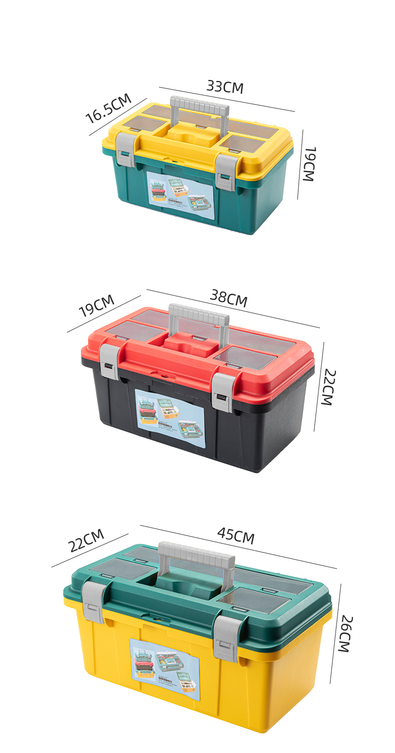 | Color | Caja de herramientas negra y amarilla de 12,5 pulgadas (modelo económico), caja de herramientas verde y amarilla de 14 pulgadas (modelo económico), caja de herramientas verde y amarillo de 15 pulgadas (modelo boutique), caja de herramientas Roja y negra de 15 pulgadas (modelo boutique), caja de herramientas verde y amarillo de 17 pulgadas (modelo boutique), caja de herramientas verde y amarillo de 20 pulgadas (modelo boutique), caja de herramientas Roja y negra de 20 pulgadas (modelo boutique) |
