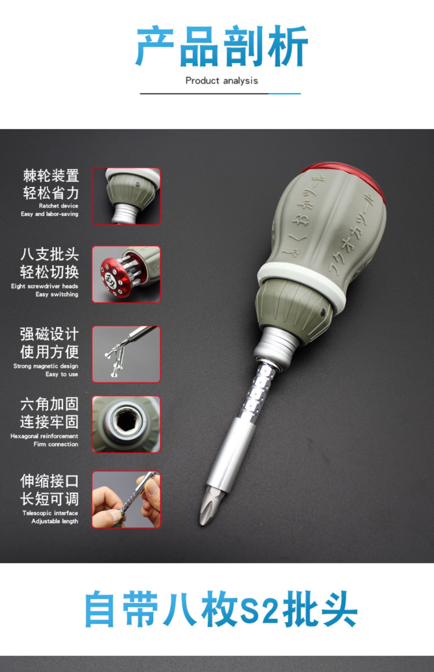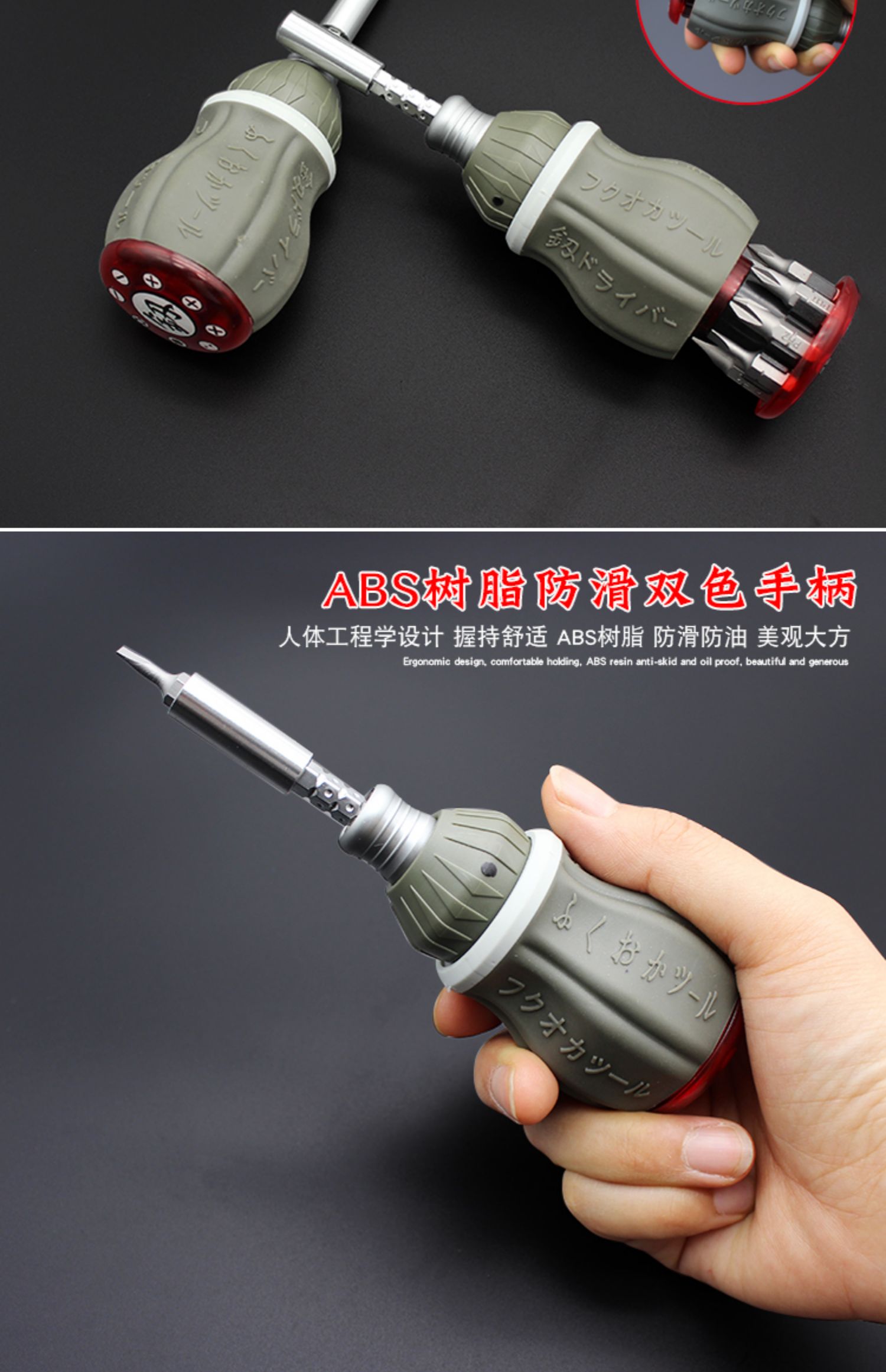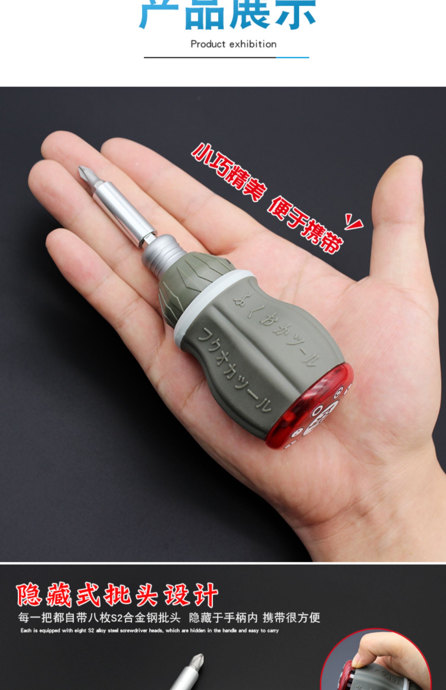Mini destornillador pequeño Fukuoka, trinquete telescópico, destornillador cruzado de doble propósito, destornillador hexagonal con cabezal de lote magnético, un juego