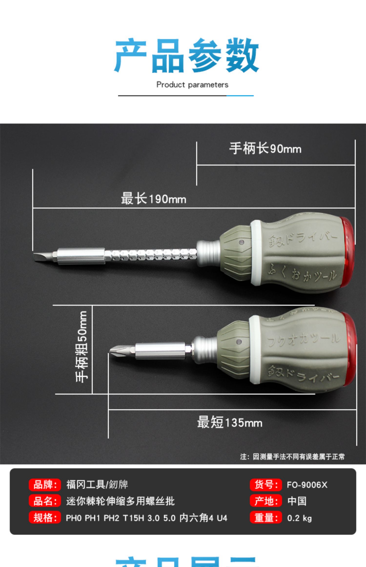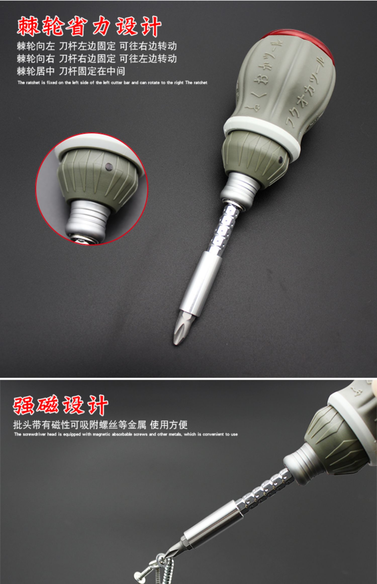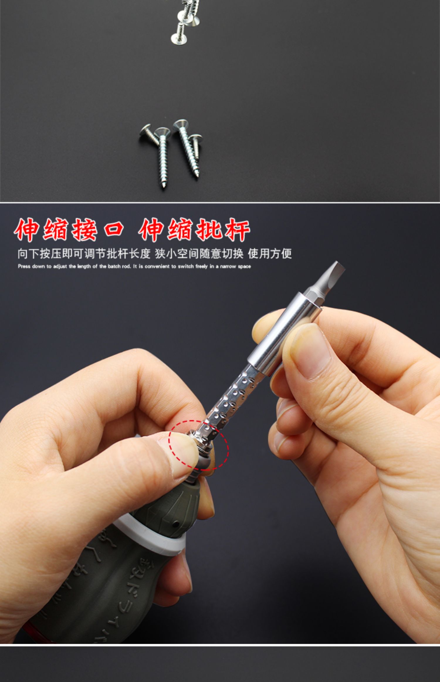 Mini destornillador pequeño Fukuoka, trinquete telescópico, destornillador cruzado de doble propósito, destornillador hexagonal con cabezal de lote magnético, un juego