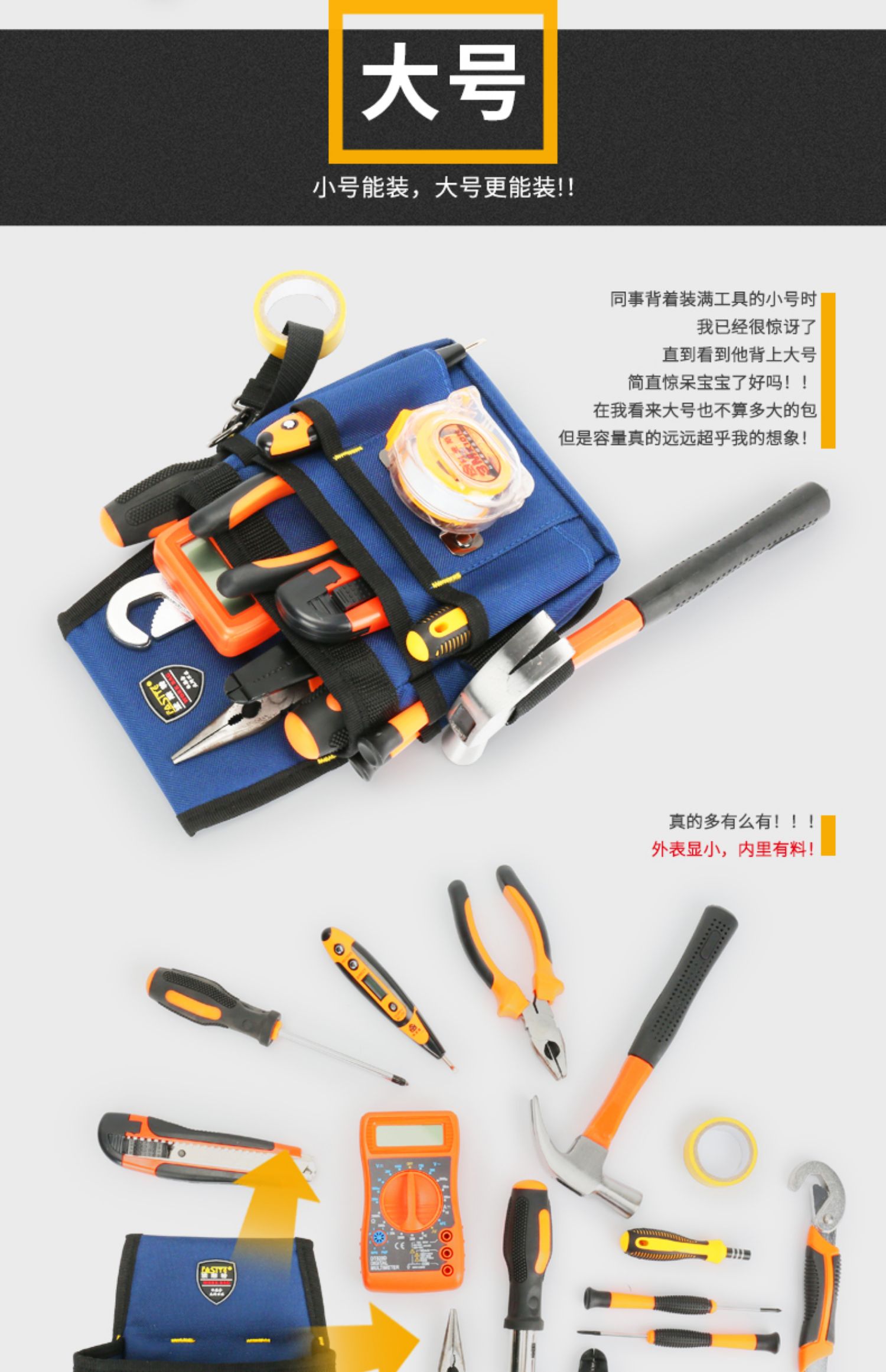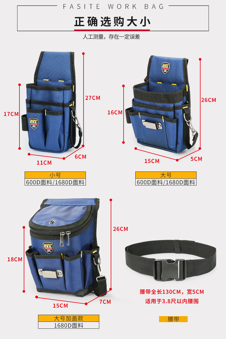 Toolkit especial para electricistas de Fast, carpintería con tapa, cintura gruesa, bolsa colgante, bolsillos múltiples, reparación a gran altitud, cremallera, riñonera
