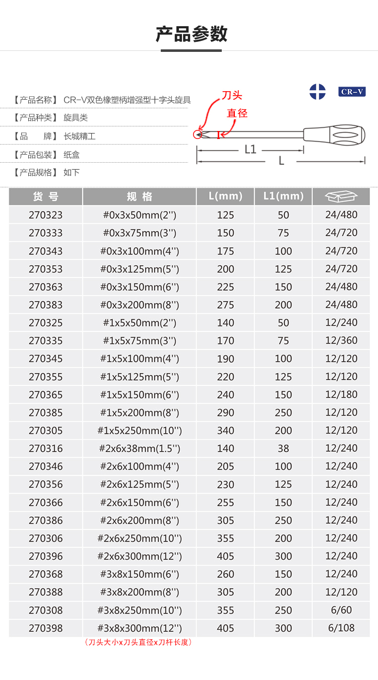 | Especificaciones y modelos | Destornillador cruzado ¿ 0x3x50mm (2 pulgadas) 270323, destornillador cruzado ¿ 0x3x75mm (3 pulgadas) 270333, destornillador cruzado ¿ 0x3x100mm (4 pulgadas) 270343, destornillador cruzado ¿ 0x3x125mm (5 pulgadas) 270353, destornillador cruzado ¿ 0x150mm (6 pulgadas) 270363, destornillador cruzado ¿ 0x3x200mm (8 pulgadas) 270383, destornillador cruzado ¿ 10x50mm (2 pulgadas) 270033 270325, destornillador cruzado ¿ 1x5x75mm (3 pulgadas) 270335, destornillador cruzado ¿ 1x5x100mm (4 pulgadas) 270345, destornillador cruzado ¿ 1x5x125mm (5 pulgadas) 270355, destornillador cruzado ¿ 1x150mm (8 pulgadas) 270365, destornillador cruzado ¿ 1x200mm (8 pulgadas) 2705, destornillador cruzado ¿ 1x5x10mm (10 pulgadas) 2705, destornillador cruzado?X38mm (1,5 pulgadas) 270316, destornillador cruzado ¿ 2x6x100mm (4 pulgadas) 270346, destornillador cruzado ¿ 2x6x125mm (5 pulgadas) 270356, destornillador cruzado ¿ 2x6x150mm (6 pulgadas) 270366, destornillador cruzado ¿ 2x6x200mm (8 pulgadas) 270386, destornillador cruzado ¿ 2x6x250mm (10 pulgadas) Pulgada) 270306, destornillador cruzado ¿ 2x6x300mm (12 pulgadas) 270396, destornillador cruzado ¿ 3x8x150mm (6 pulgadas) 270368, destornillador cruzado ¿ 3x8x200mm (8 pulgadas), destornillador cruzado ¿ 3x8x250mm (10 pulgadas) 2703008, destornillador cruzado ¿ 3x8x300mm (12 pulgadas) 270398 |