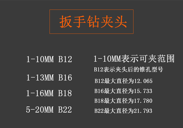 | Modelo | 1 - 10 mm b12,1 - 13 MM b16,1 - 16 mm b18,5 - 20 mm b22,1 - 13 MM taladro con mango cónico 2, 1 - 13 MM taladro con mango cónico 3, 1 - 13 MM taladro con mango cónico 4, 1 - 13 MM taladro con mango cónico 5, 1 - 16 taladro con mango cónico 2, 1 - 16 taladro con mango cónico 3, 1 - 16 taladro con mango cónico 4, 1 - 16 taladro con mango cónico 5 - 20 taladro con mango cónico 2, 5 - 20 taladro con mango cónico 5 - 20, 5 - 20 taladro con mango cónico 5 - 20 la cabeza está equipada con mango cónico no. 3, la cabeza de perforación 5 - 20 está equipada con mango cónico no. 4, la cabeza de perforación 5 - 20 está equipada con mango cónico no. 5, la cabeza de perforación 1 - 10 está equipada con mango cónico No. 2, la cabeza de perforación 1 - 13 está equipada con hilo de mango r8 m12, la cabeza de perforación 1 - 16 está equipada con hilo de mango r8 m12, La cabeza de perforación 1 - 13 está equipada con mango recto de 20mm, la cabeza de perforación 1 - 16 está equipada con mango recto de 20mm, la cabeza de perforación 3 - 16MM b18. El diámetro exterior del clip es de 53, el blanco lechoso 1 - 13 aprieta el mango del Cono No. 2, el blanco 1 - 13 aprieta el mango del Cono no. 3, el blanco beige 1 - 13 aprieta el mango del Cono no. 4, el gris claro 1 - 13 aprieta el mango del Cono no. 5, el rojo naranja 1 - 16 aprieta el mango del Cono No. 2, el color de la raíz de loto 1 - 16 aprieta el mango del Cono no. 3, el rojo sandía 1 - 16 aprieta el mango del Cono no. 4, el rojo vino 1 - 16 aprieta el mango del Cono No. 5. |
