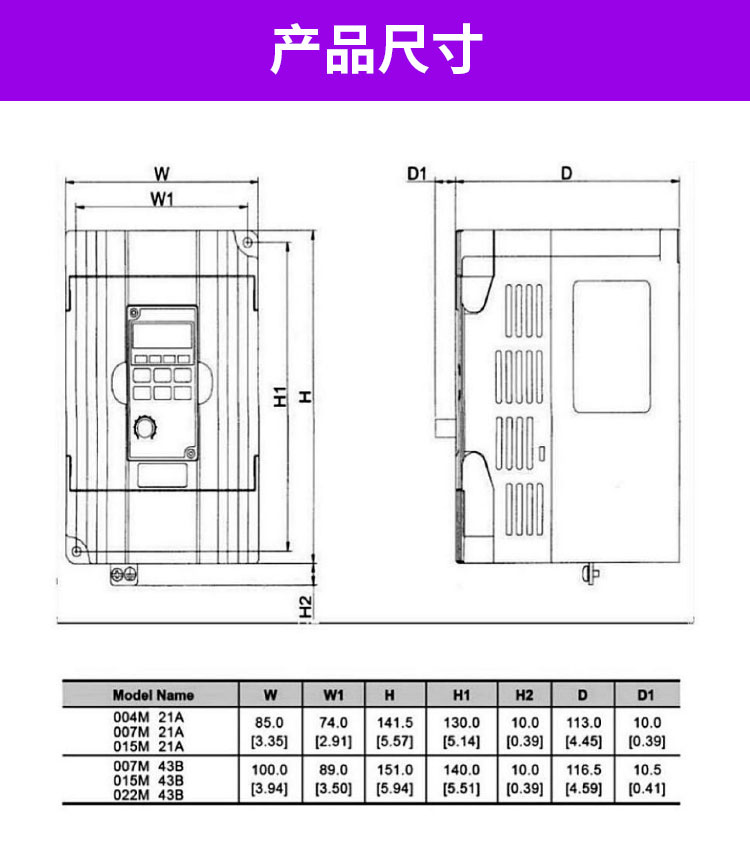 | Modelo | 0.4kw230V VFD004M21A,0.75kw230V VFD007M21A,1.5kw 230V VFD015M21A,2.2KW230V VFD022M23B,460V 0.75KW VFD007M43B,460V1.5kw VFD015M43B,460V2.2kw VFD022M43B,460V3.7/4kw VFD037M43A,460V 5.5kw VFD055M43A,460V 7.5kw VFD075M43A,380V 11KW Tipo de carga pesada, 380v 15 kW de carga pesada, 380v 18,5k de carga pesada, 380v 22 kW de carga pesada, 380v 30 kw de carga pesada, 380v 37 kW de carga pesada, 380v 45 kW de carga pesada, 380v55 kW de carga pesada, 380v75 kW de carga pesada, 380v90 kW de carga pesada, 380v 110 kW de carga pesada, 380v132 kW de carga pesada |