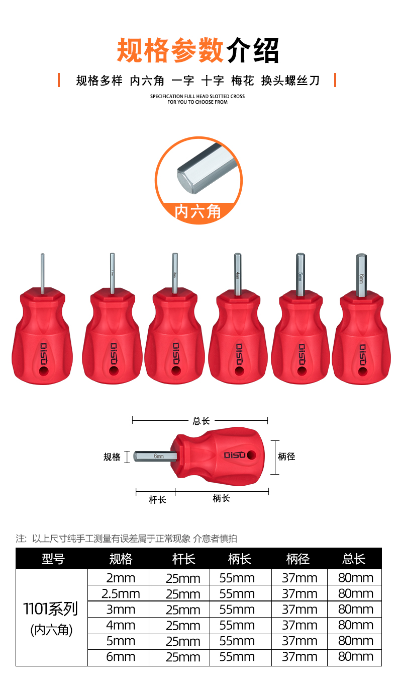 | Modelo de especificación | 2*25 cabeza de rábano hexagonal (1101),2.5*25 cabeza de rábano hexagonal (1101),3*25 cabeza de rábano hexagonal (1101),4*25 cabeza de rábano hexagonal (1101),5*25 cabeza de rábano hexagonal (1101),6*25 cabeza de rábano hexagonal (1101),2*50 cabeza de rábano hexagonal (1101),2.5*50 cabeza de rábano hexagonal (1101),3*50 cabeza de rábano hexagonal (1101),4*50 cabeza de rábano hexagonal (1101),5*50 cabeza de rábano hexagonal (1101),6*50 cabeza de rábano hexagonal (1101),Destornillador de cabeza de rábano cruzado de 6mm (1101),Destornillador de cabeza de rábano de una palabra de 6mm (1101),T6 cabeza de rábano ciruela (1101),T7 cabeza de rábano ciruela (1101),T8 cabeza de rábano ciruela (1101),T9 cabeza de rábano ciruela (1101),T10 cabeza de rábano ciruela (1101),T15 cabeza de rábano ciruela (1101),T20 cabeza de rábano ciruela (1101),Destornillador de cabeza de rábano (1101),2-6*25mm cabeza de zanahoria juego hexagonal (1101),2-6*50mm cabeza de zanahoria juego hexagonal (1101),Juego de flor de ciruelo con cabeza de rábano T7-T20 (1101) |