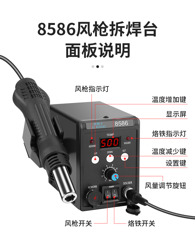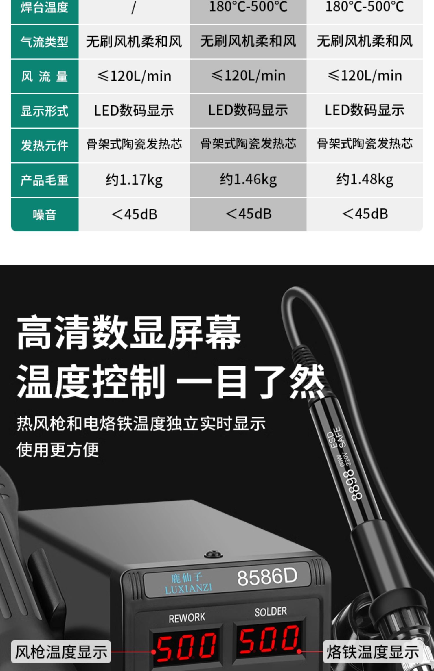 | Conjunto | Pistola de aire de visualización digital única 858d [versión mejorada pro] ★ se calienta rápidamente y el viento es fuerte. la pistola de aire de visualización digital única 858d [versión mejorada pro] paquete 1, 8586 Plataforma de soldadura de desmontaje 2 en 1 [versión mejorada pro] ★ hibernación inteligente, 8586 Plataforma de soldadura de desmontaje 2 en 1 [versión mejorada pro] paquete 1, 8586 Plataforma de soldadura de desmontaje 2 en 1 [versión mejorada pro] paquete 2, 8586 Plataforma de soldadura de desmontaje 2 en 1 [versión mejorada pro] paquete 3, 8586d Plataforma de soldadura de visualización digital 2 en 1 [versión mejorada pro] se calienta rápidamente y la hibernación inteligente, 8586d Plataforma de soldadura de doble pantalla [versión mejorada pro 1]versión] paquete uno, 8586d Mesa de soldadura de doble pantalla digital dos en uno [versión mejorada pro] paquete dos, 8586d Mesa de soldadura de doble pantalla digital dos en uno [versión mejorada pro] paquete tres |