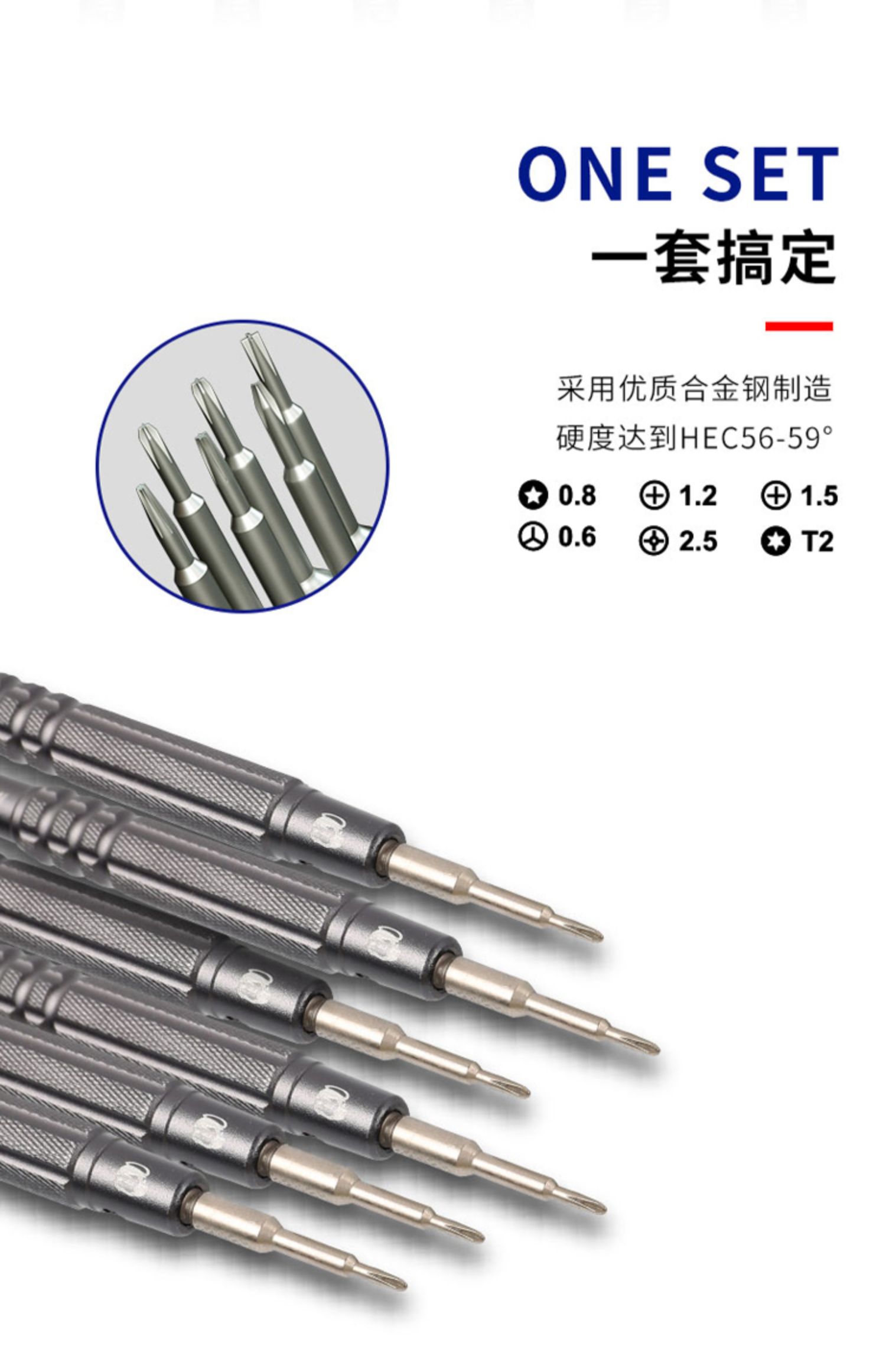| Color | El destornillador imini del reparador (seis estrellas t2), el destornillador imini del reparador (palabra y 0.6), el destornillador imini del reparador (cruz 1.2), el destornillador imini del reparador (cruz 1.5), el destornillador imini del reparador (cinco estrellas 0.8), el destornillador imini del reparador (cruz 2.5), un juego de seis especificaciones cada una (completo) |