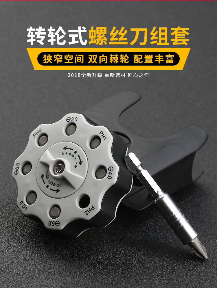 Japón Fukuoka portátil mini trinquete bidireccional una palabra cruzada ahorro de mano de obra destornillador de forma especial conjunto de cabeza de lote herramienta
