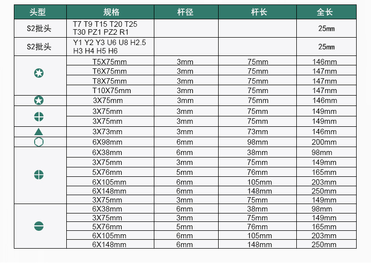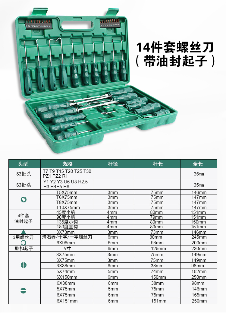 | Especificaciones y modelos | Caja azul 12 destornilladores, S2 10 destornilladores, 41 conjuntos de destornilladores, 41 conjuntos de destornilladores (con destornillador de sellado de aceite) |