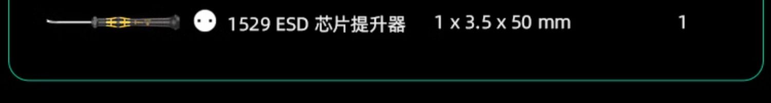 | Color | 1578a Cruz [6 juegos] (030170), 1550 reparación de teléfonos móviles [6 juegos] (030180), 2035a Cruz [6 juegos] (118150), 2035b Cruz [6 juegos] (118152), 2050 reparación de teléfonos móviles [6 juegos] (030181), modelo general [12 juegos] (073675), modelo profesional [12 juegos] (073677), modelo general [25 juegos] (134000), modelo profesional antiestático [25 juegos] (134019), paquete de conveniencia actualizado [29 juegos] (134027) |