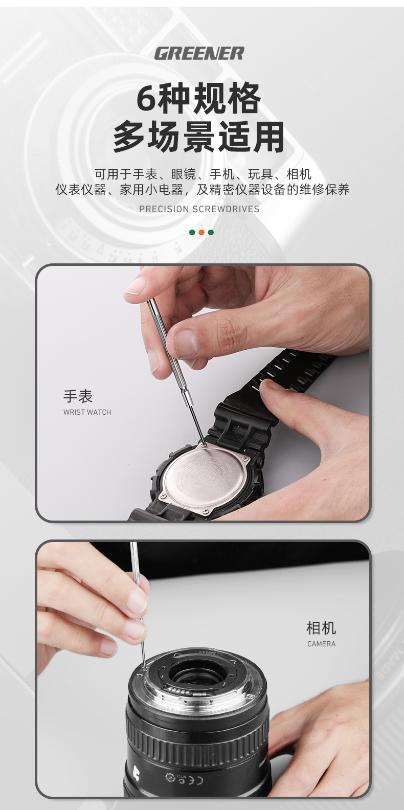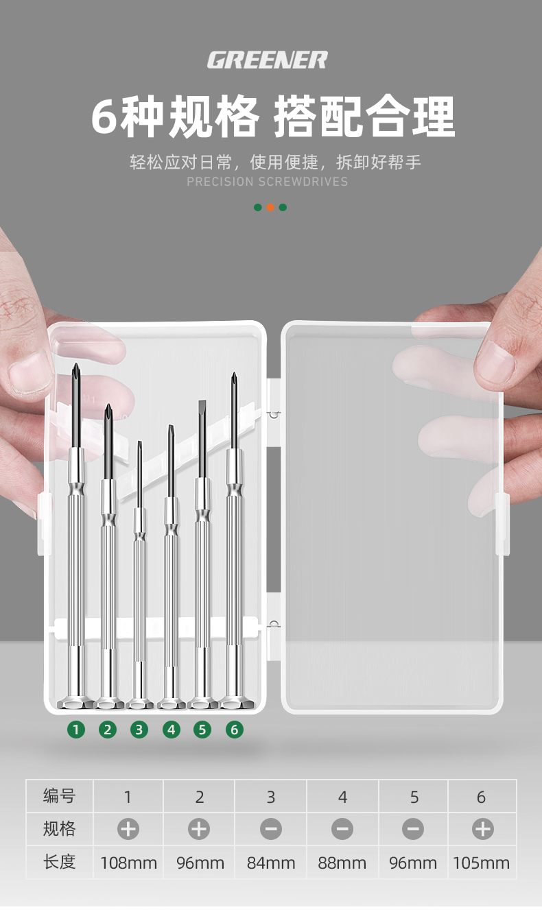 | Especificaciones y modelos | [Modelo básico] 6 conjuntos de lote de reloj, [Modelo básico] 6 conjuntos de lote de tornillo (magnetizador), [Modelo básico] 6 conjuntos de lote de tornillo (desmontar 7 conjuntos), [Modelo actualizado] 11 conjuntos de lote de tornillo, [Modelo actualizado] 16 conjuntos de lote de tornillo, [Modelo actualizado] 11 conjuntos de lote de tornillo (magnetizador), [Modelo actualizado] 16 conjuntos de lote de tornillo (magnetizador), [Modelo de doble uso] 1.2mm-S2 material, [Modelo de doble uso] 2mm-S2 material (paquete de regalo de desmontaje),[Doble uso] 2 piezas de conjunto - material S2, [6 piezas de Silver Knight] serie de tornillo de precisión |