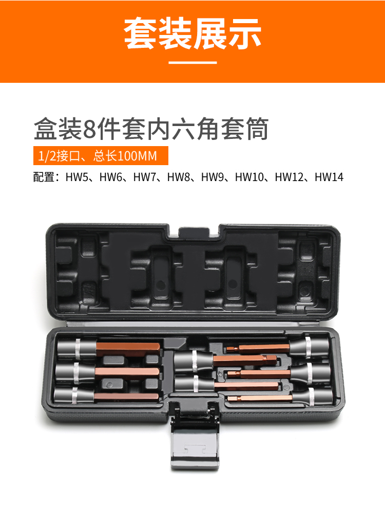 | Especificaciones y modelos | 100mm caja larga 8 piezas conjunto completo 100mm caja larga conjunto completo, 60mm caja larga 8 piezas conjunto completo 60mm longitud total caja larga 3mm manga hexagonal H3 longitud total 60mm, 4mm manga hexagonal H4 longitud total 60mm, 5mm manga hexagonal H5 longitud total 60mm, 6mm manga hexagonal H6 longitud total 60mm, 7mm manga hexagonal H7 longitud total 60mm, 8mm manga hexagonal H8 longitud total 960mm manga hexagonal H9 longitud total 60mm, 10mm manga hexagonal H10 longitud total 60mm, 12mm manguito hexagonal h12 longitud total 60mm, 14mm manguito hexagonal h14 longitud total 60mm, 3mm manguito hexagonal h3 longitud total 100mm, 4mm manguito hexagonal h4 longitud total 100mm, 5mm manguito hexagonal h5 longitud total 100mm, 6mm manguito hexagonal h6 longitud total 100mm, 7mm manguito hexagonal h7 longitud total 100mm, 8mm manguito hexagonal h8 longitud total 100mm, 9mm manguito hexagonal h9 longitud total 100mm, 10mm manguito hexagonal h10 longitud total 100mm, 12mm manguito hexagonal H12 longitud total 100mm 14mm manguito hexagonal H14 longitud total 100mm 17mm manguito hexagonal H17 longitud total 100mm 19mm manguito hexagonal H19 longitud total 100mm |