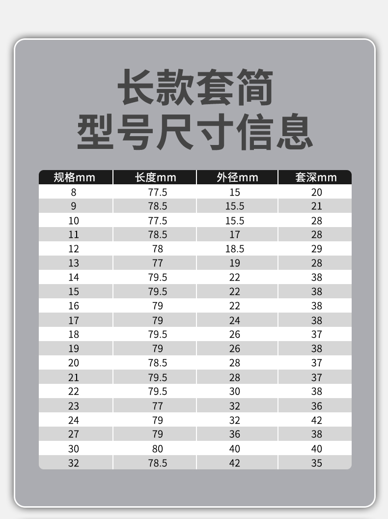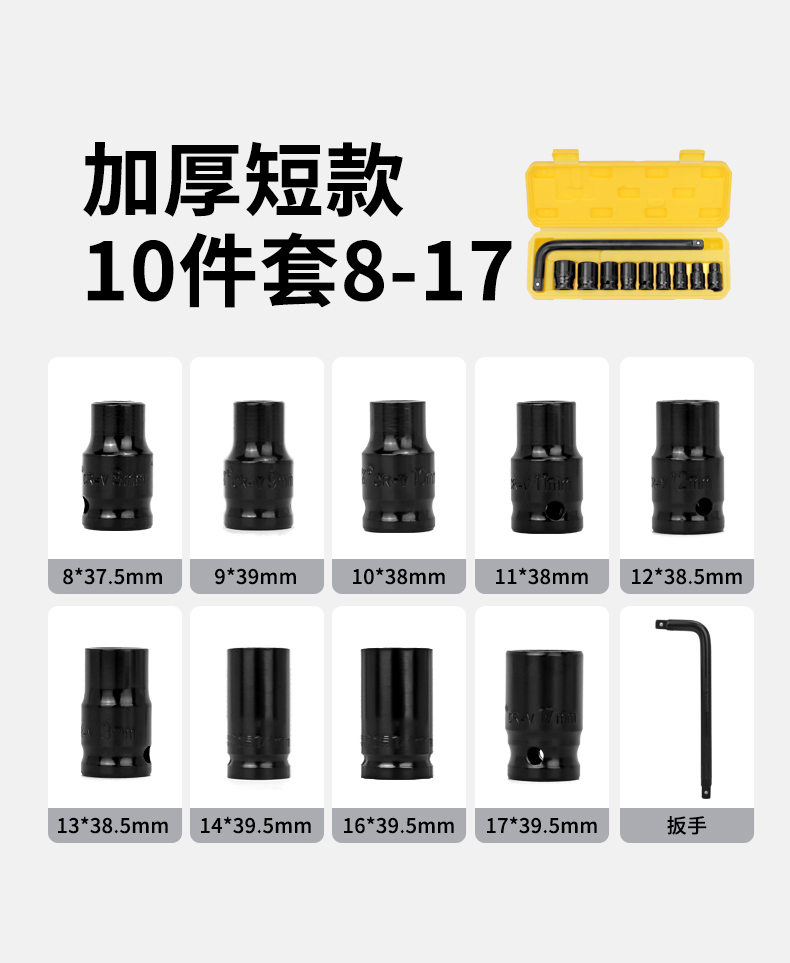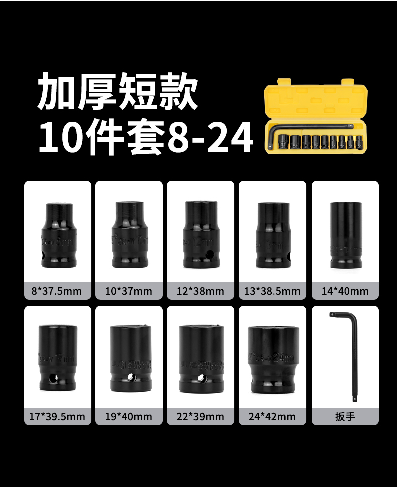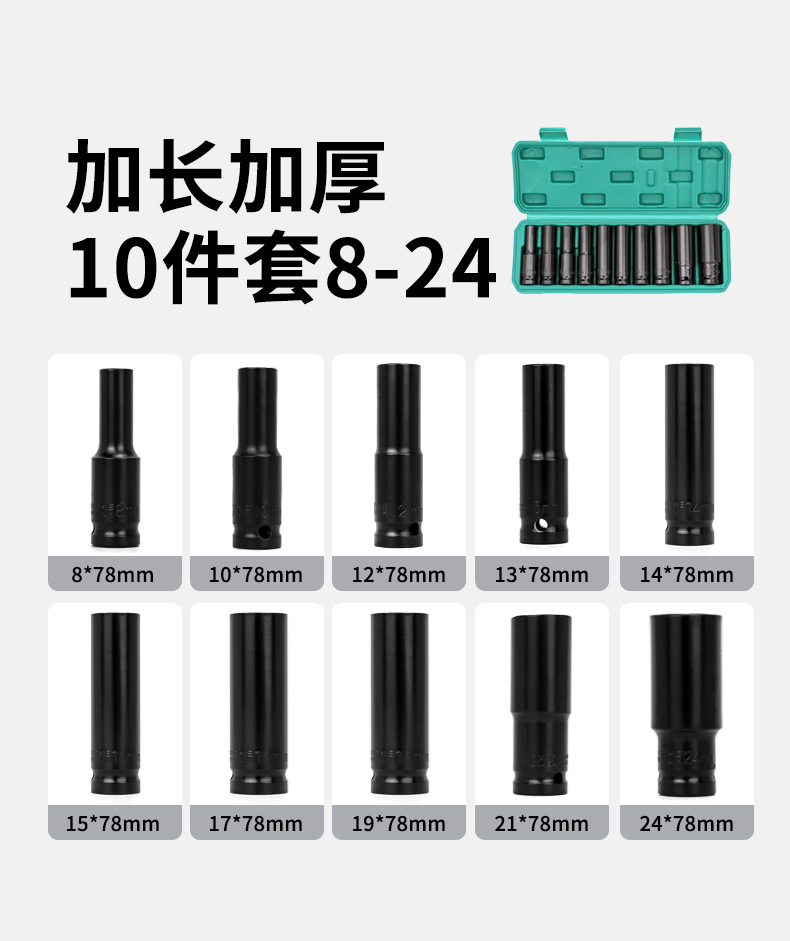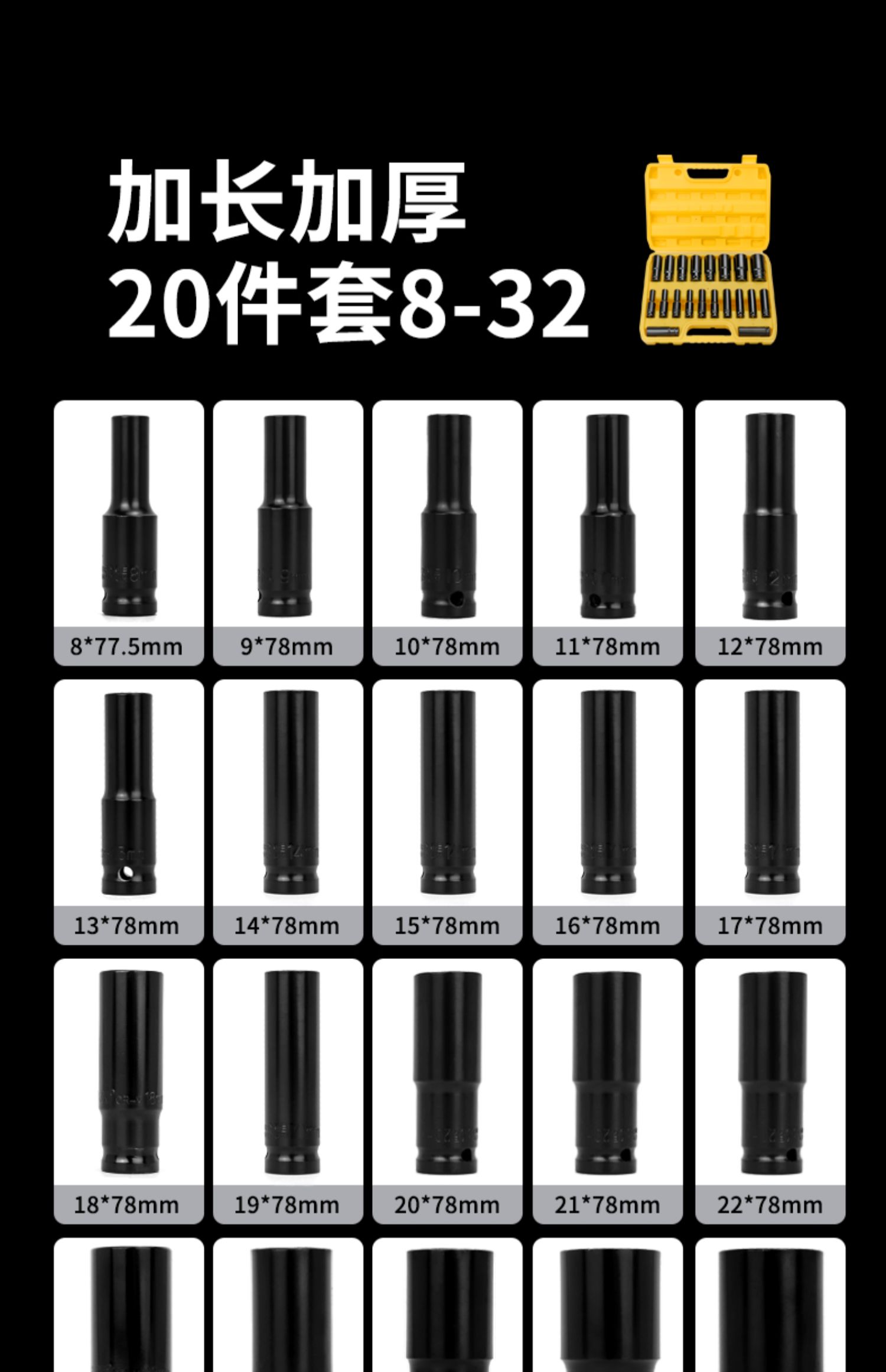 | Especificaciones y modelos | 10 conjuntos de paquetes de rotura para el tipo corto de engrosamiento [ manguita eléctrica 8 - 17], 10 conjuntos de paquetes de rotura para el tipo corto de engrosamiento [ manguita eléctrica 8 - 24], 10 conjuntos de paquetes de rotura para el tipo largo de engrosamiento [ manguita eléctrica 8 - 24], 10 conjuntos de paquetes de rotura para el tipo largo de engrosamiento [ manguita eléctrica 10 - 24] (junta universal), 14 conjuntos de paquetes de paquetes de rotura para el tipo largo de engrosamiento [ manguita eléctrica 8 - 24] (con llave de trinquete), 15 conjuntos de paquetes de rotura para extender y engrosar el manguito eléctrico 8 - 32, 20 conjuntos de paquetes de rotura para extender y engrosar el manguito eléctrico 8 - 32, 10 conjuntos de paquetes de rotura para extender y engrosar el manguito eléctrico 8 - 24 + barra de flexión 10 pulgadas, 10 conjuntos de paquetes de rotura para extender y engrosar el manguito eléctrico 8 - 24 + 1 / 2 llave de trinquete, 10 conjuntos de paquetes de rotura para extender y engrosar el manguito eléctrico 10 - 24 + 1 / 2 llave de trinquete, Reemplazo de rotura - alargamiento y grosor [ manguito eléctrico 10 - 24] 10 piezas (modelo de conexión) + barra curva 10 pulgadas, reemplazo de rotura - alargamiento y grosor [conjunto de 15 piezas] manguito eléctrico 8 - 32 + barra curva 10 pulgadas, reemplazo de rotura - alargamiento y grosor [conjunto de 15 piezas] manguito eléctrico 8 - 32 + llave de trinquete, reemplazo de rotura - alargamiento y grosor [conjunto de 20 piezas] manguito eléctrico 8 - 32 + barra curva 10 pulgadas, Paquete de rotura - extensión y grosor [conjunto de 20 piezas] manguito eléctrico 8 - 32 + 1 / 2 llave de trinquete, conjunto de trinquete de 12 piezas, manguito de trinquete de banda azul de 32 piezas, conjunto de 8 / 10 / 12 / 13 / 14 / 16 / 17 / 22 / 19 / 24 - 10 piezas |