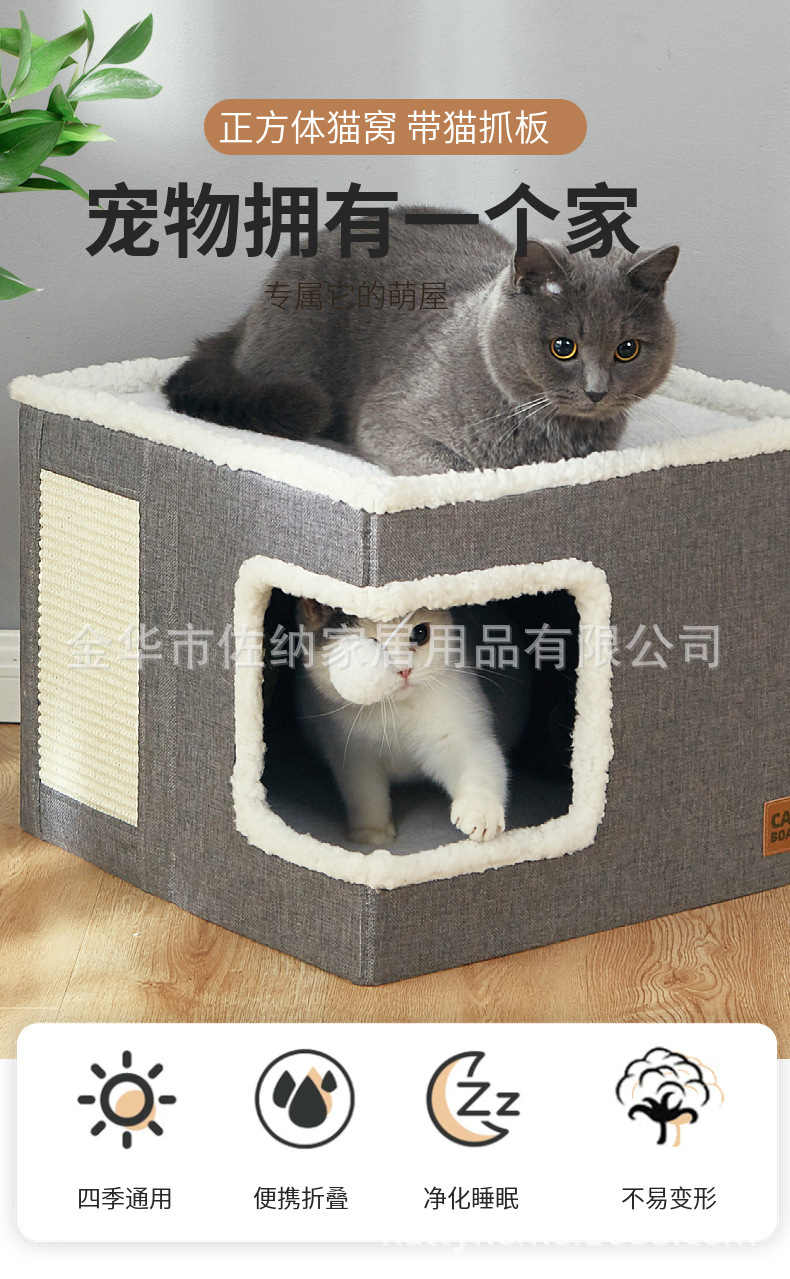 Colada para gatos cuadrada para mascotas de venta caliente transfronteriza con tabla de agarre para gatos Colada para gatos plegable Colada para perros Cuatro estaciones Personalización general del fabricante