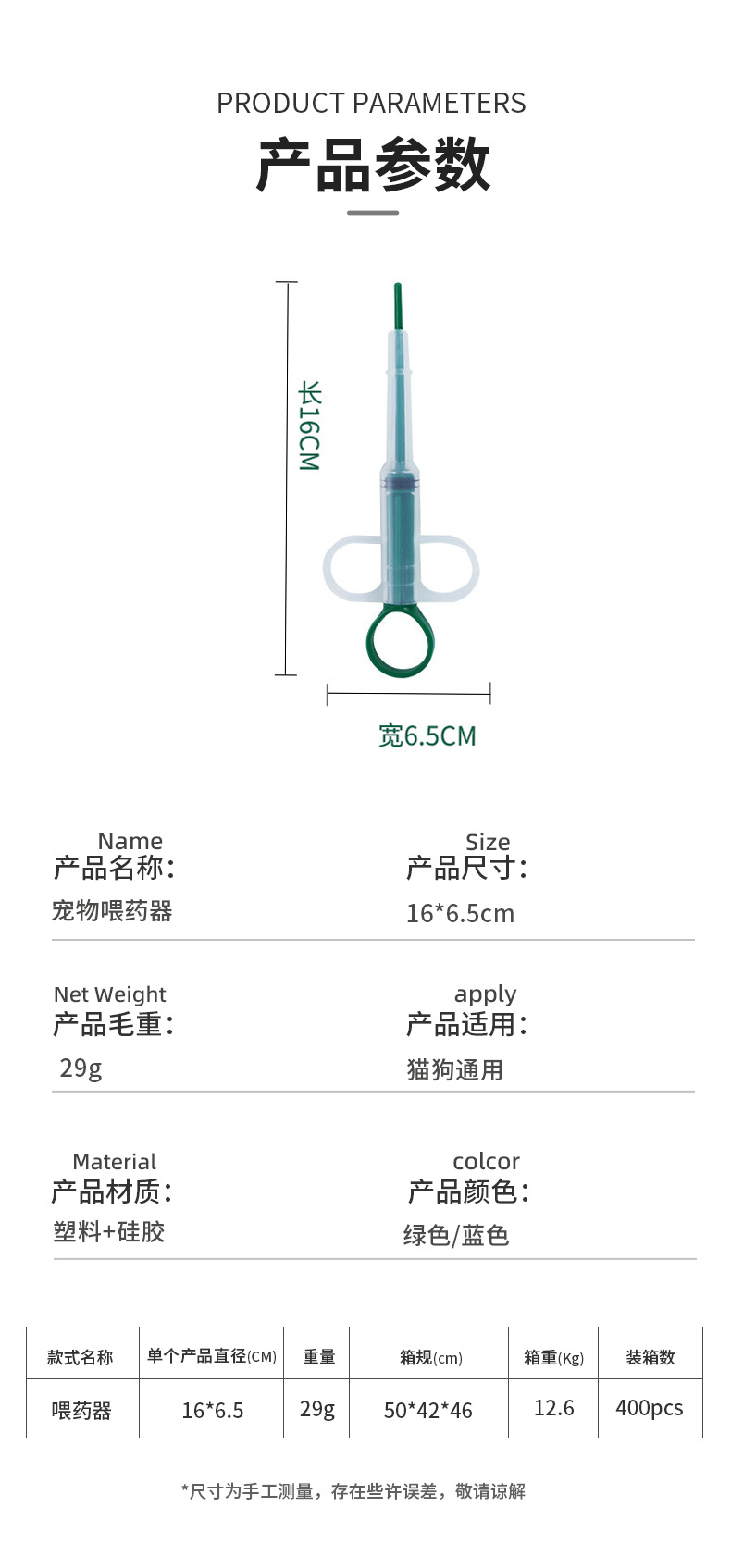 | Colores | Alimentador de medicamentos para mascotas |