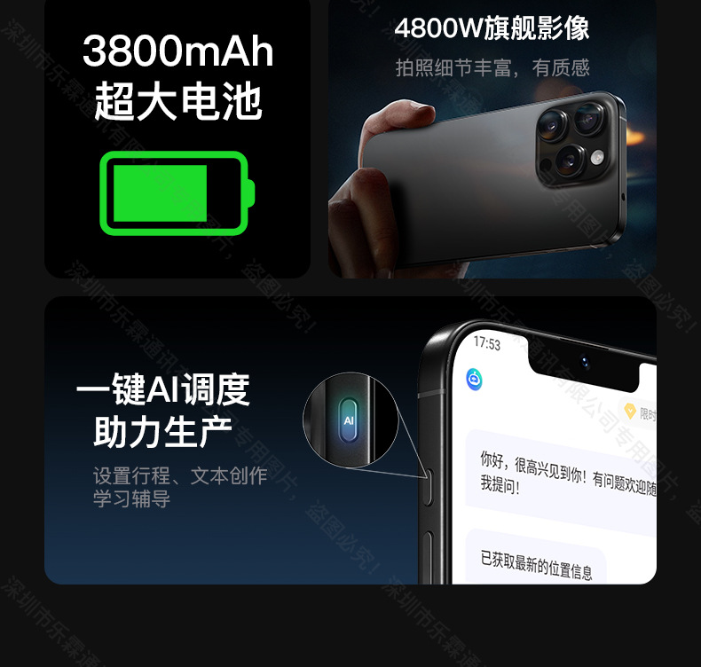 | Memoria corporal | 6+64 [Modelo ordinario encantador púrpura X16],8+128 [Modelo ordinario encantador morado X16],12 GB + 256 GB [Modelo ordinario Charming Purple X16],6+64GB [Versión AI 16Pro con un solo clic],8+128 GB [versión AI de 16 Pro con un solo clic],12+256GB [16Pro versión AI de un clic],20+512 GB [versión AI de 16 Pro con un solo clic],20+512GB [16Promax imitación fina 1:1 versión doméstica],16+1TB [16Promax imitación fina 1:1 versión nacional],20+1TB [16Promax imitación fina 1:1 versión nacional],20+512GB [Nuevo diseño 17] |