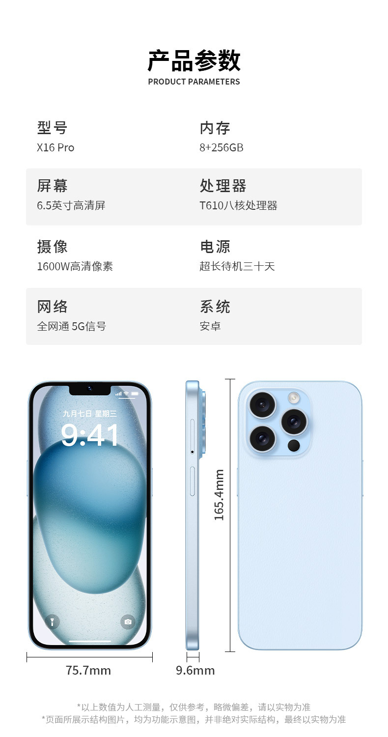 | Memoria corporal | 6+64 [Modelo ordinario encantador púrpura X16],8+128 [Modelo ordinario encantador morado X16],12 GB + 256 GB [Modelo ordinario Charming Purple X16],6+64GB [Versión AI 16Pro con un solo clic],8+128 GB [versión AI de 16 Pro con un solo clic],12+256GB [16Pro versión AI de un clic],20+512 GB [versión AI de 16 Pro con un solo clic],20+512GB [16Promax imitación fina 1:1 versión doméstica],16+1TB [16Promax imitación fina 1:1 versión nacional],20+1TB [16Promax imitación fina 1:1 versión nacional],20+1TB [Nuevo diseño 17] |