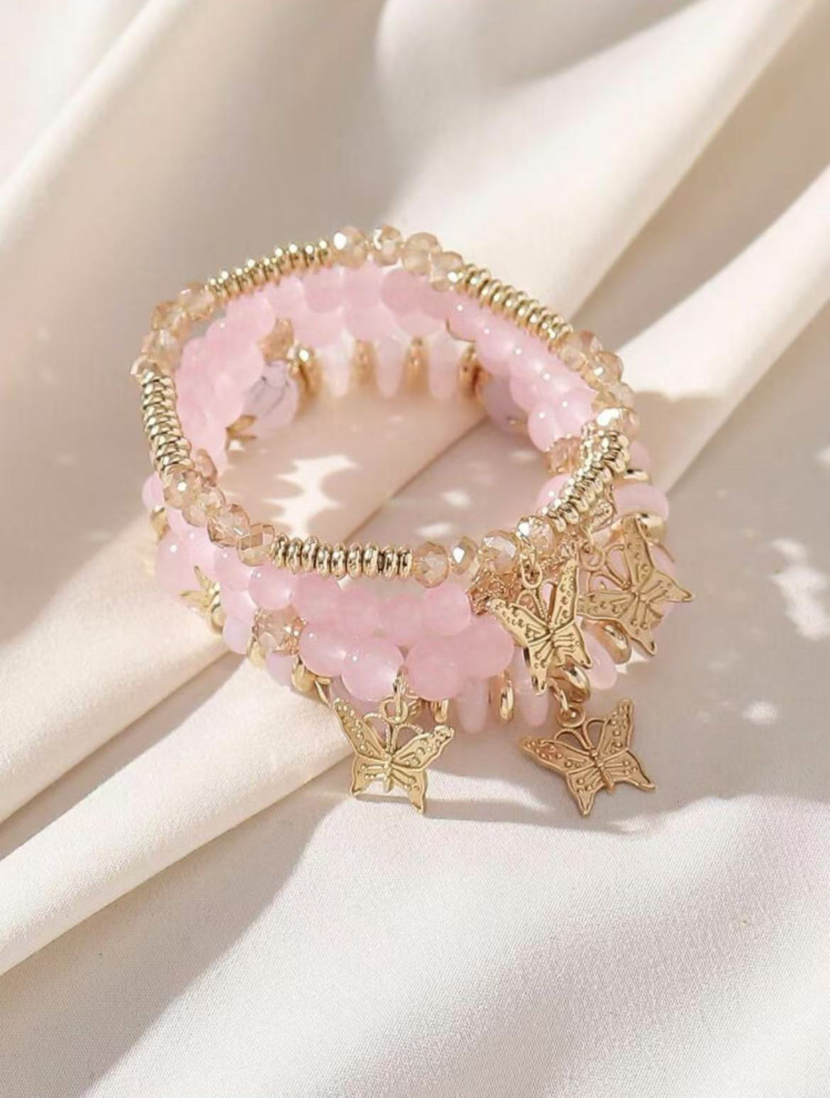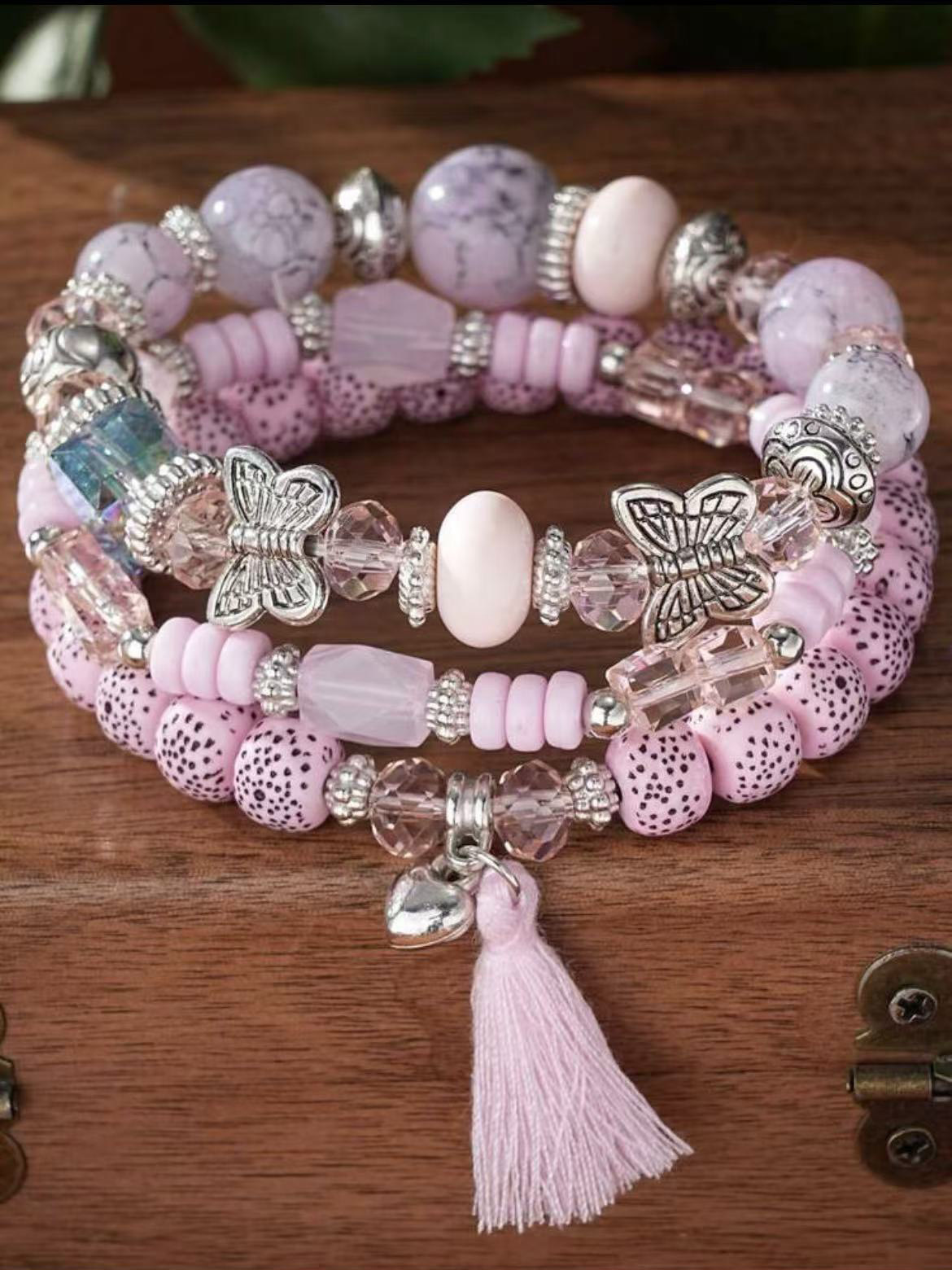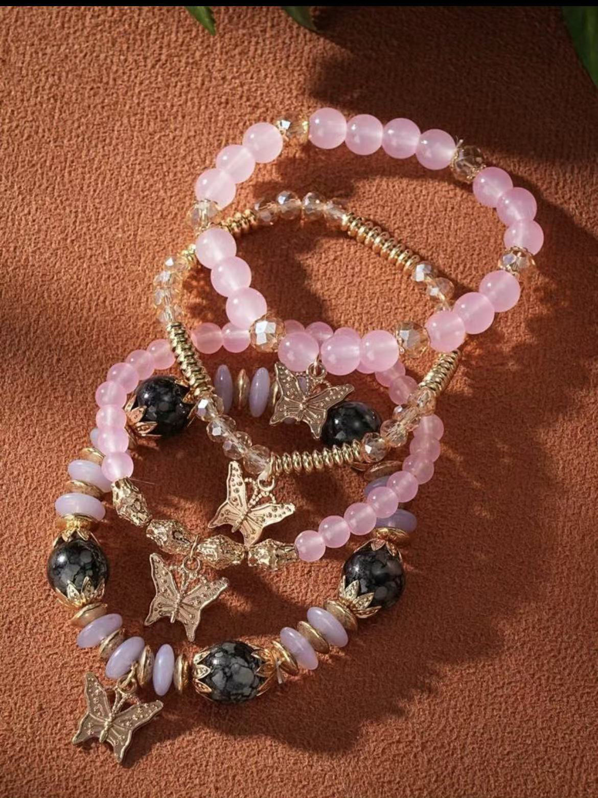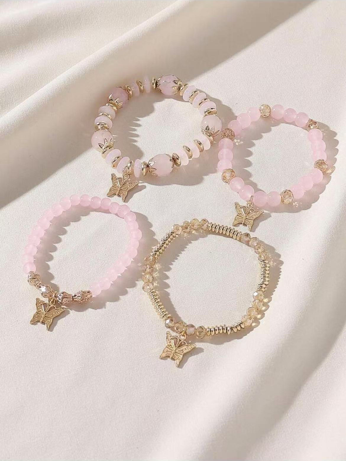 | Color | Juego de cuatro piezas de brazalete rojo, juego de cuatro piezas de brazalete rosa, juego de tres piezas de brazalete rosa y juego de tres piezas de brazalete verde |